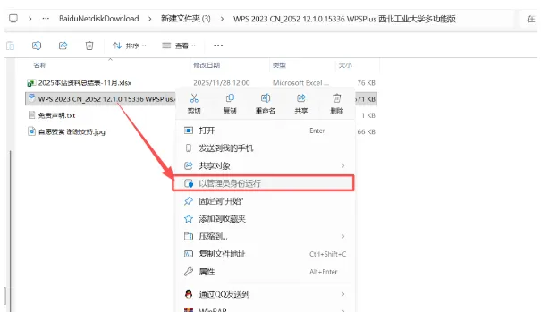 打开解压后的文件夹,找到名为“WPS 2023 CN_2052 12.1.0.15336 WPSPlus”的文件,右键选择“以管理员身份运行”。自定义安装设置在安装界面点击“自定义设置”,根据需求勾选所需组件(如文字、表格、演示等),阅读并同意许可协议,可修改安装路径至非系统盘以节省空间。