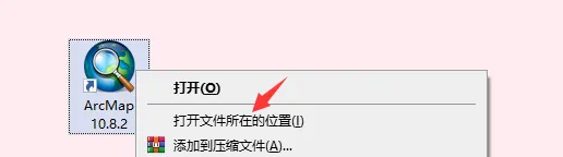 20.在桌面上找到”ArcMap 10.8.2“软件图标,右键选择“打开文件所在位置”