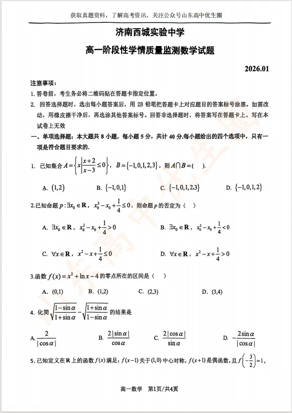 距离期末只剩一个月左右的时间,优生圈整理了西城实验高一1月数学、历史真题,同学们可以提前练手。完整版资料,可以扫描下方二维码领取。