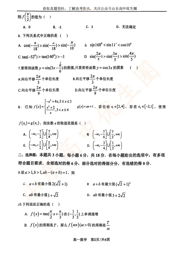 25-26学年西城实验高一月考试题