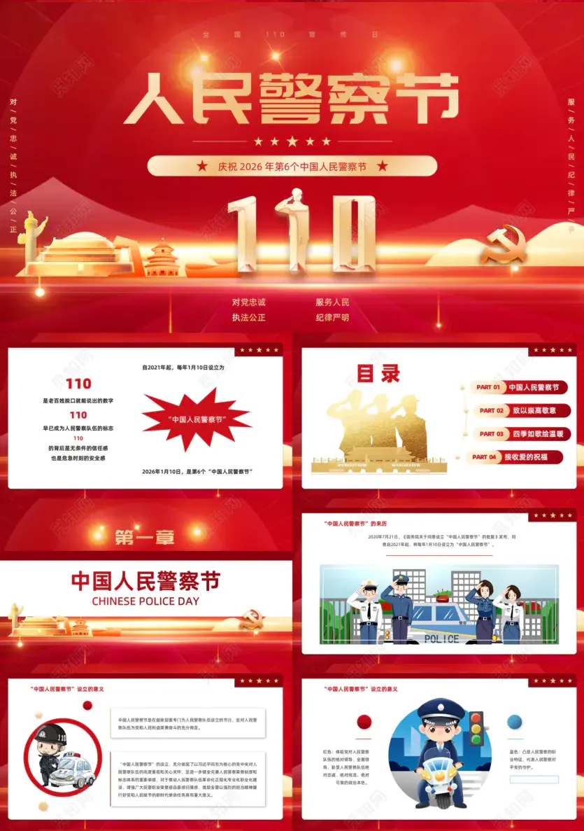 【免费下载】2026年110中国人民警察节主题PPT模板,精选10套