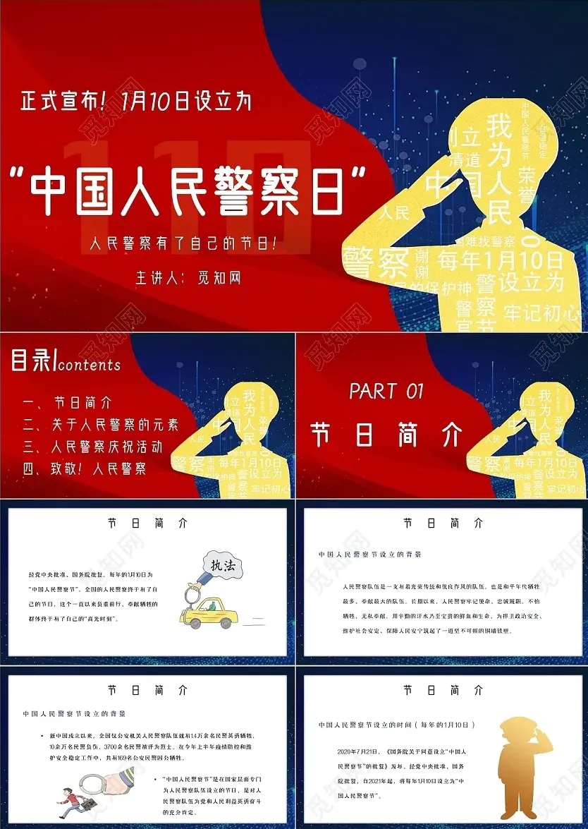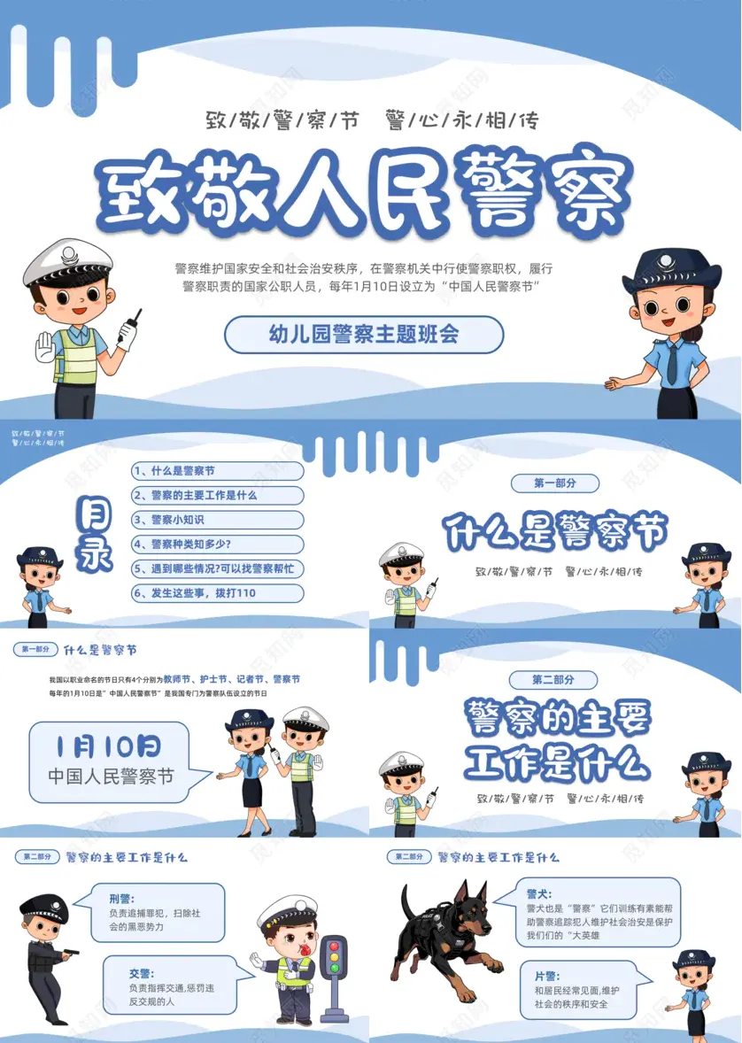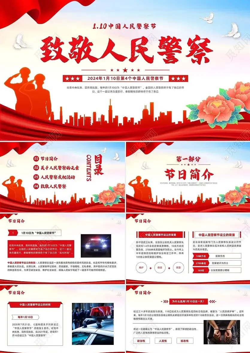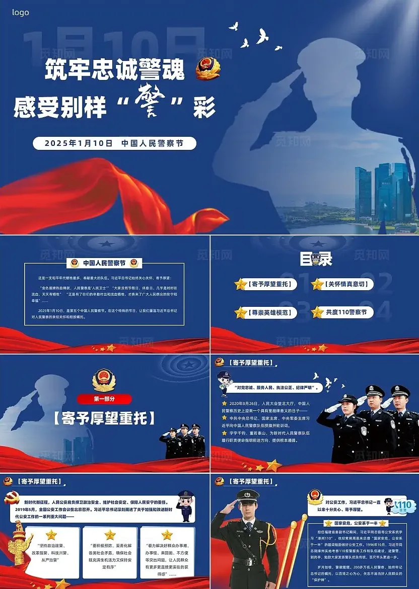 今天小编给大家带来了10套中国人民警察节主题PPT模板,可用于节日宣传、主题班会、教育培训等。