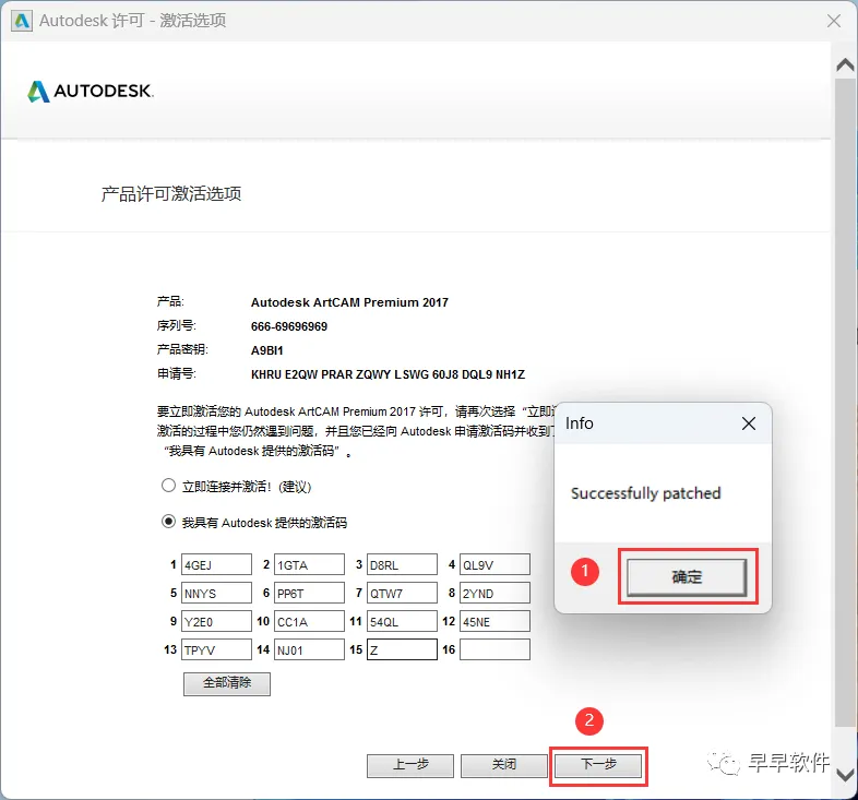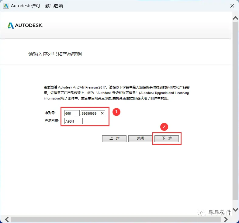 17、序列号输入:666-69696969,产品密钥输入:A9BI1,再点击【下一步】