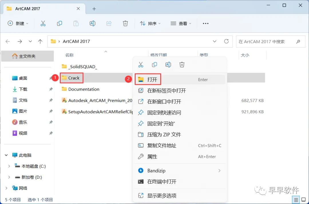 19、回到ArtCAM 2017文件夹,找到【Crack】文件夹,右键【打开】它