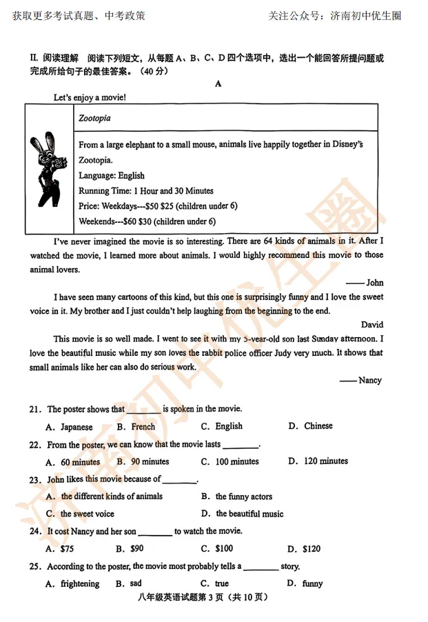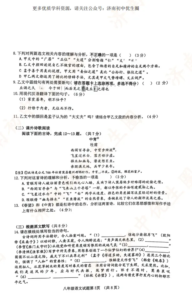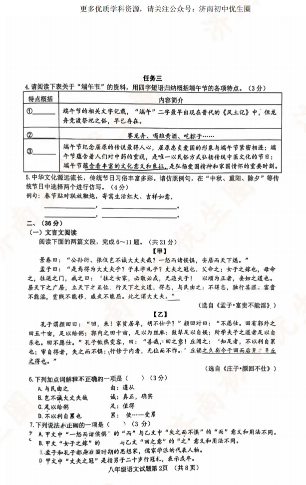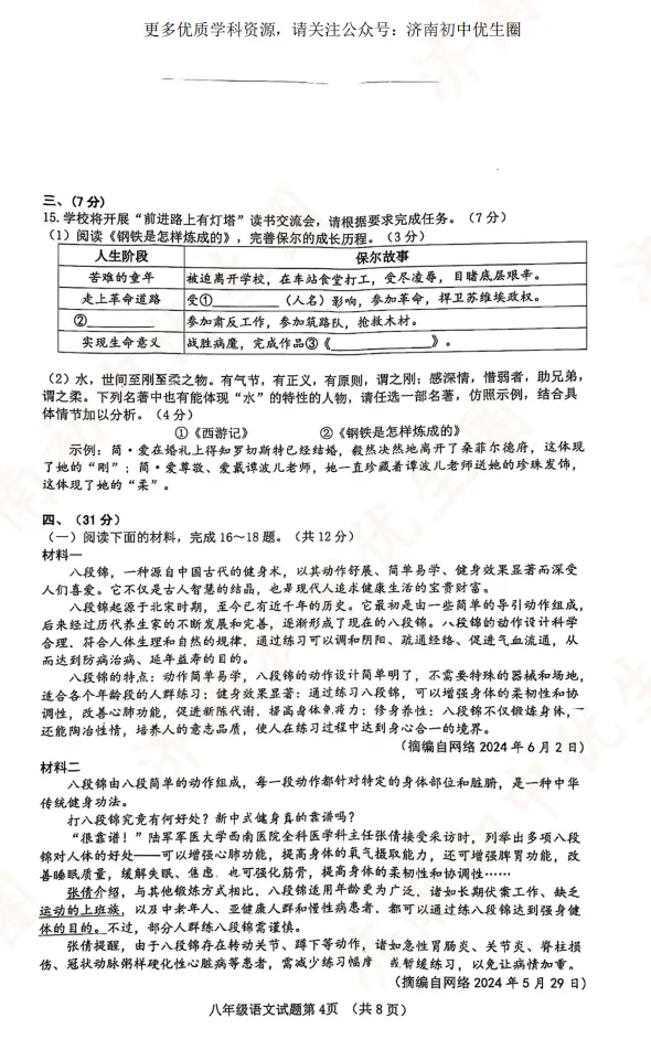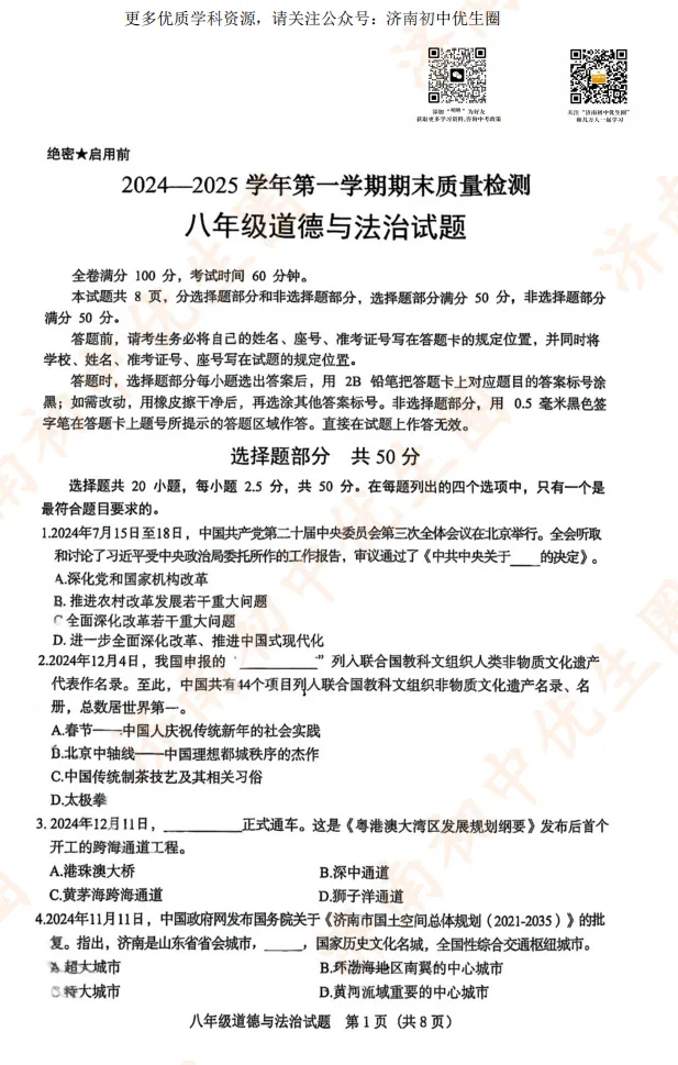 优生圈整理24-25学年历城区初二期末试题,获取完整版试题,可以扫描下方二维码领取。25-26学年期末试题将持续更新