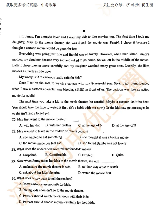 一模时间定了!24年济南初三一模真题+答案解析免费领取!