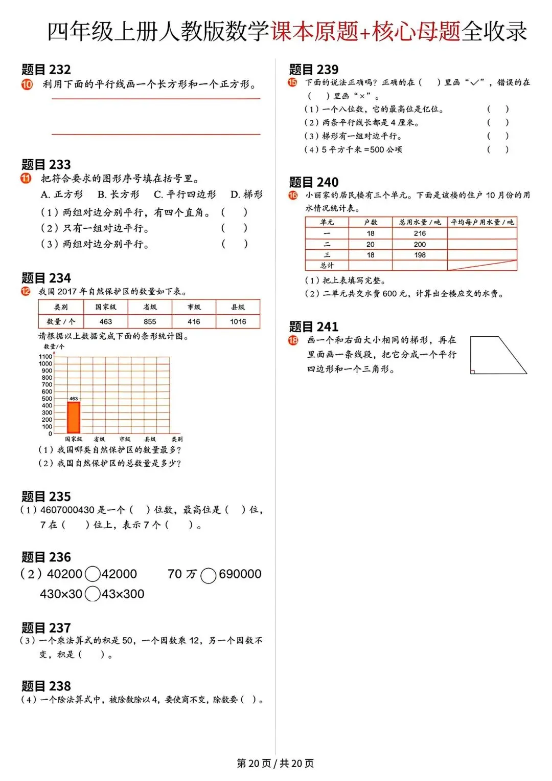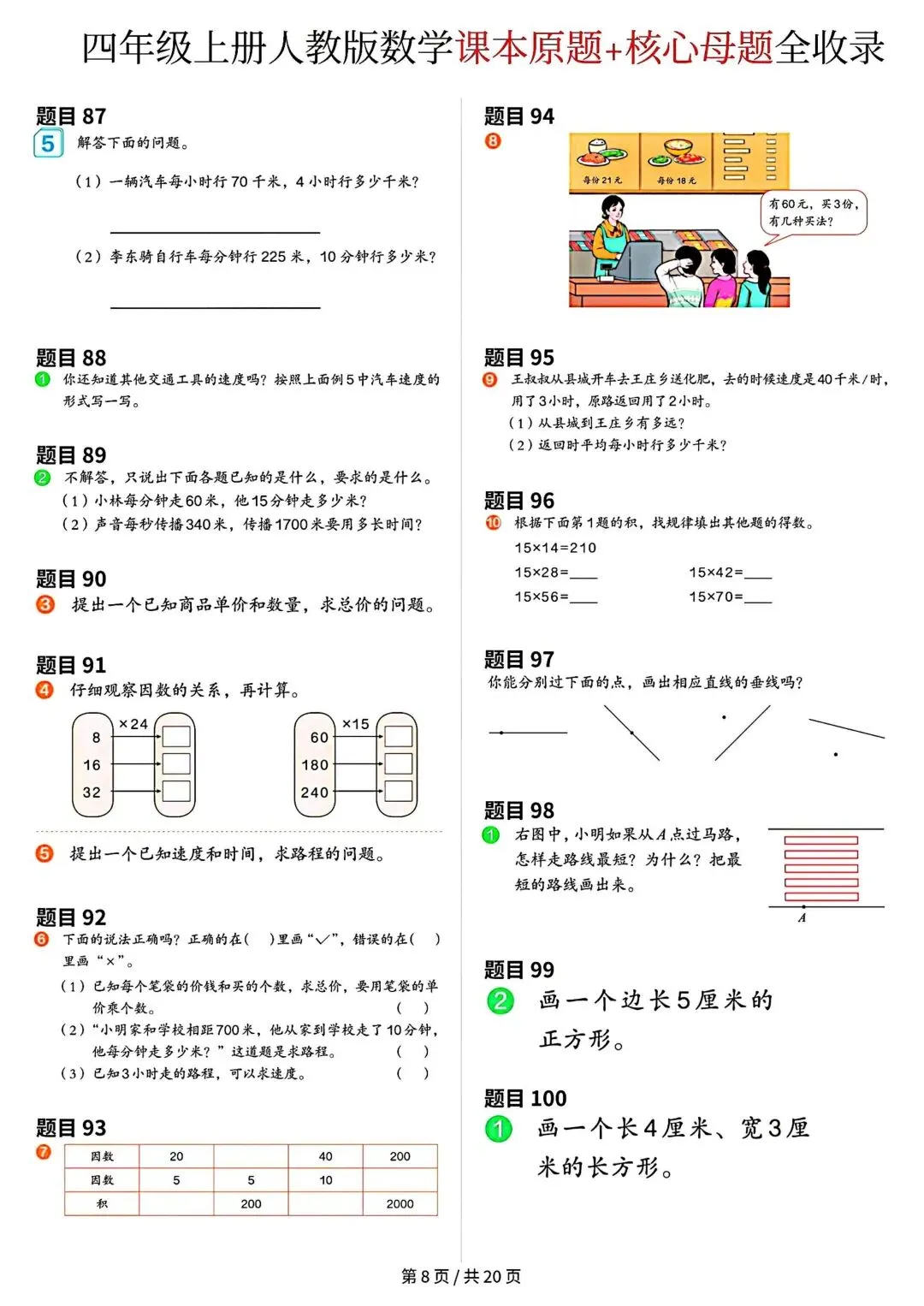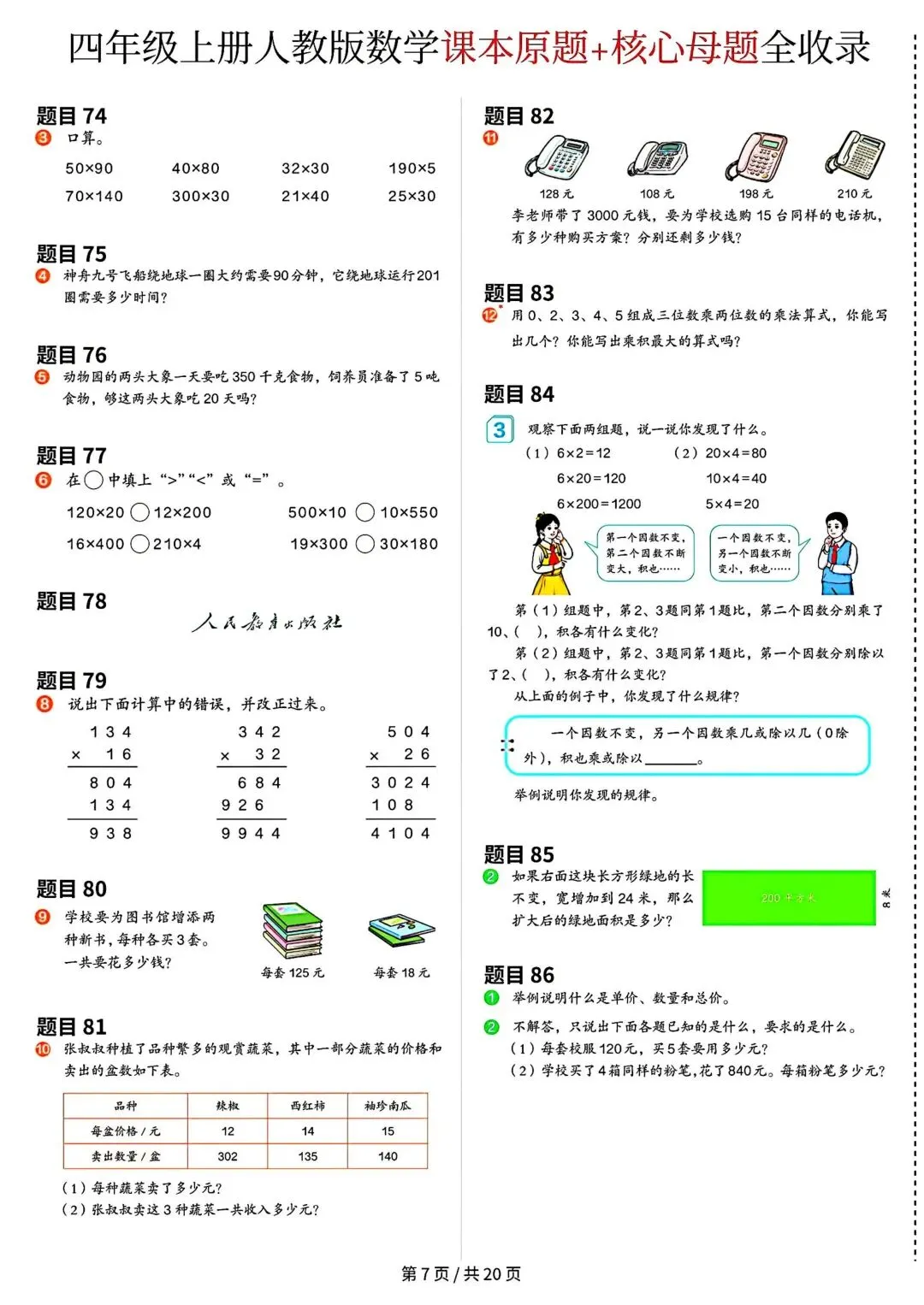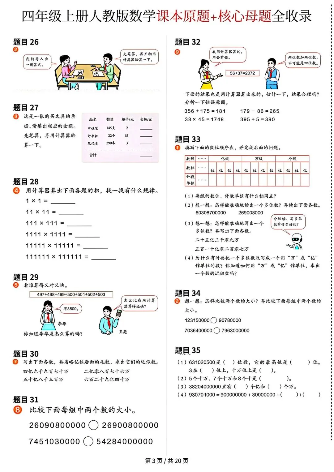 《四年级上册数学课本原题》