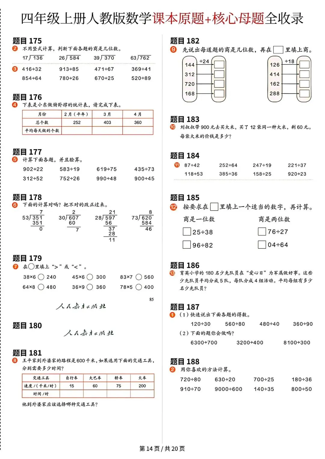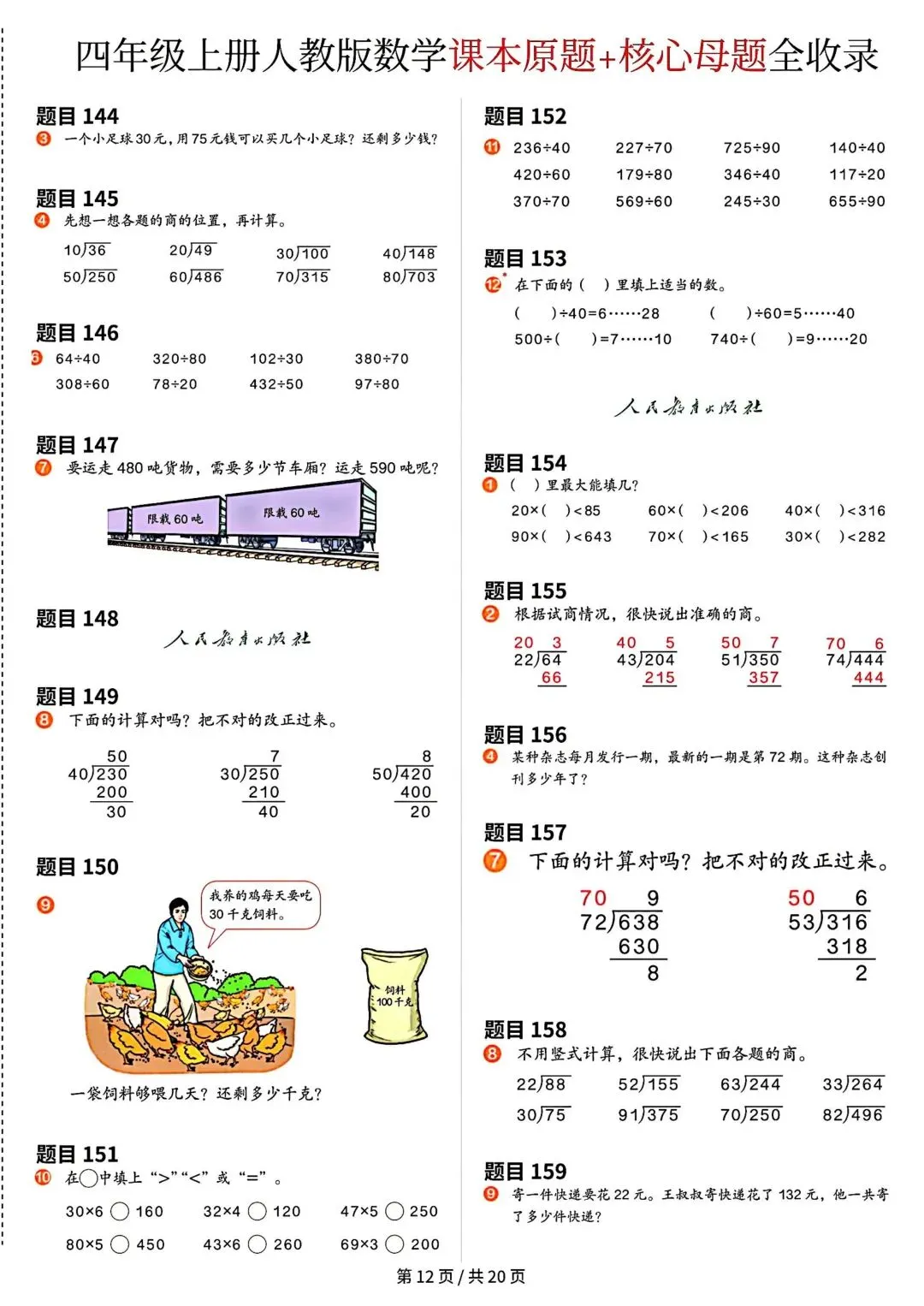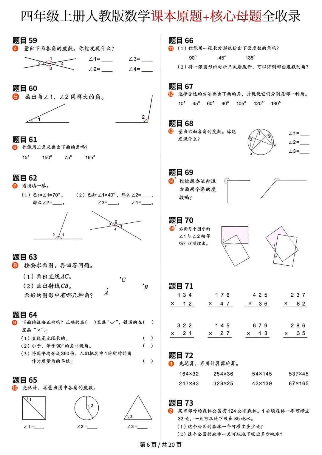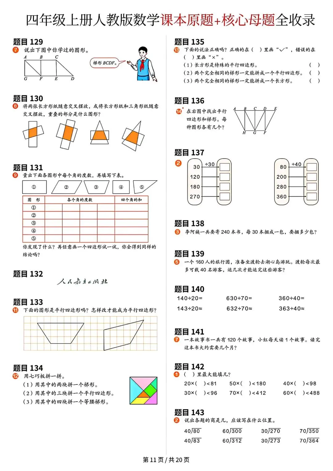 《四年级上册数学课本原题》
