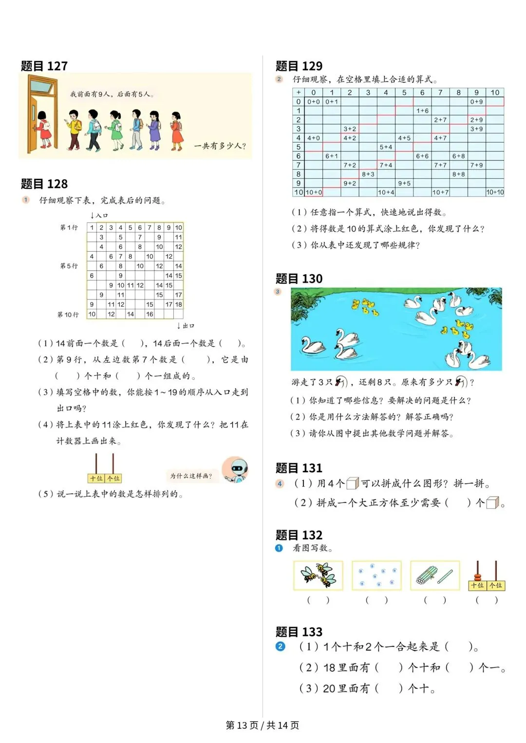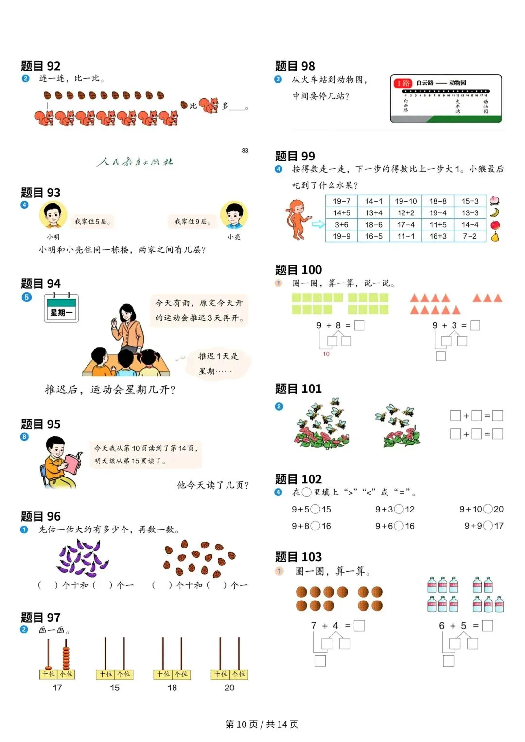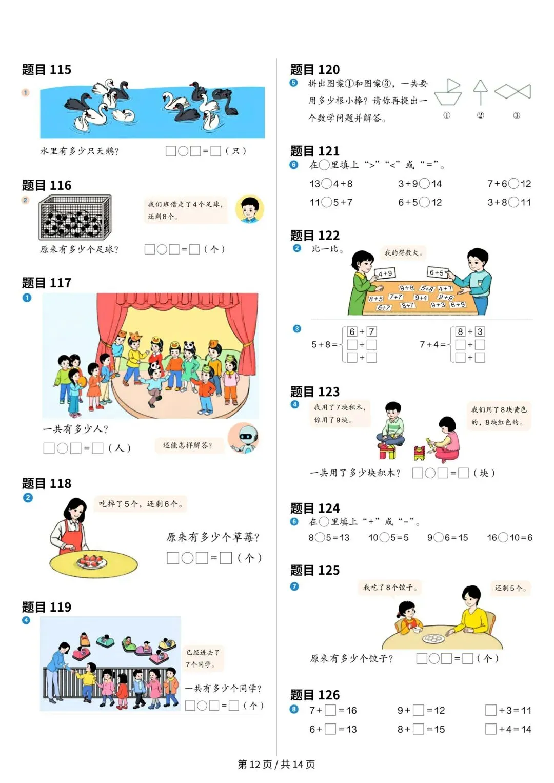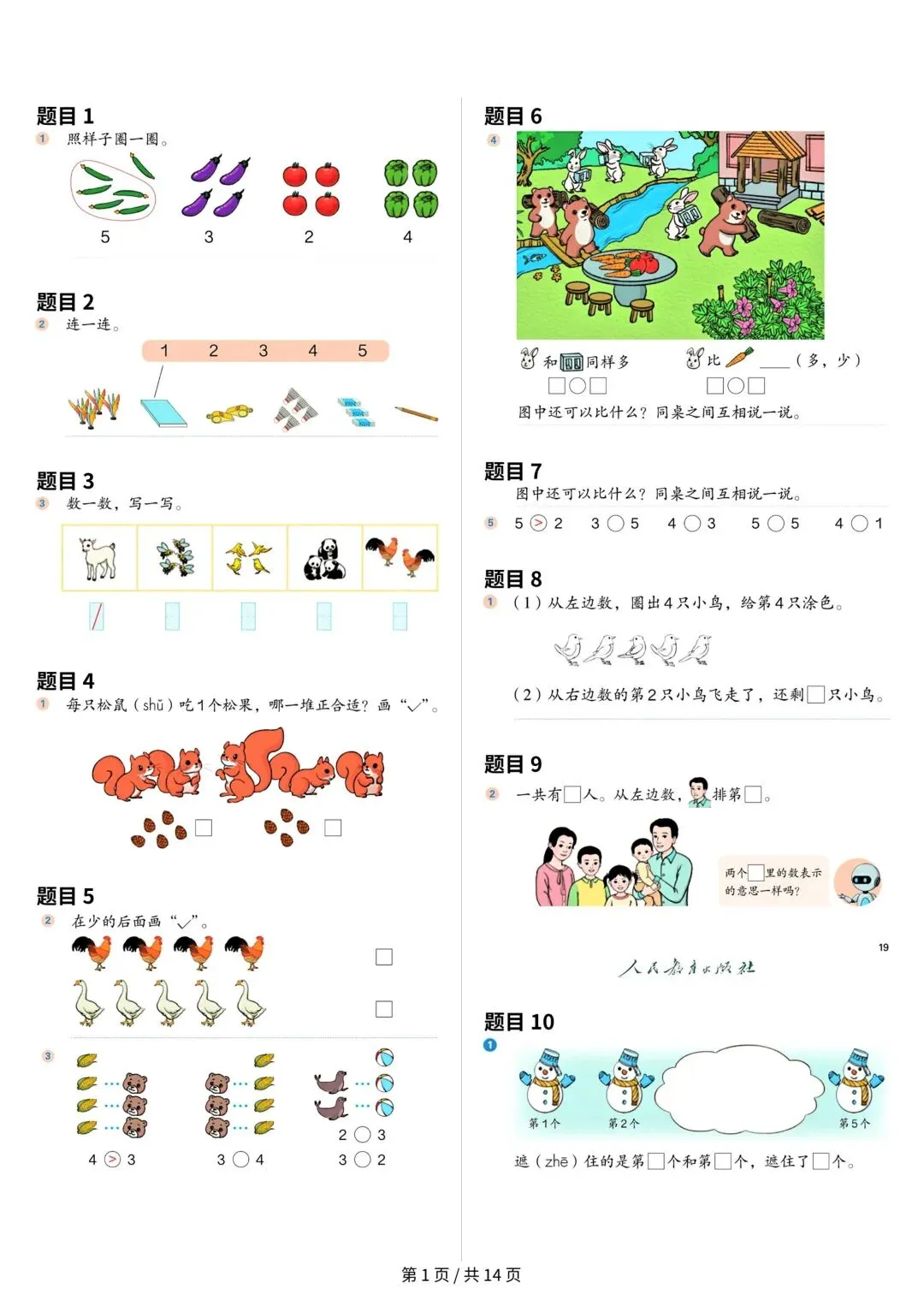 大家好,今天安安老师给大家整理了一年级上册数学课本原题,共14页。