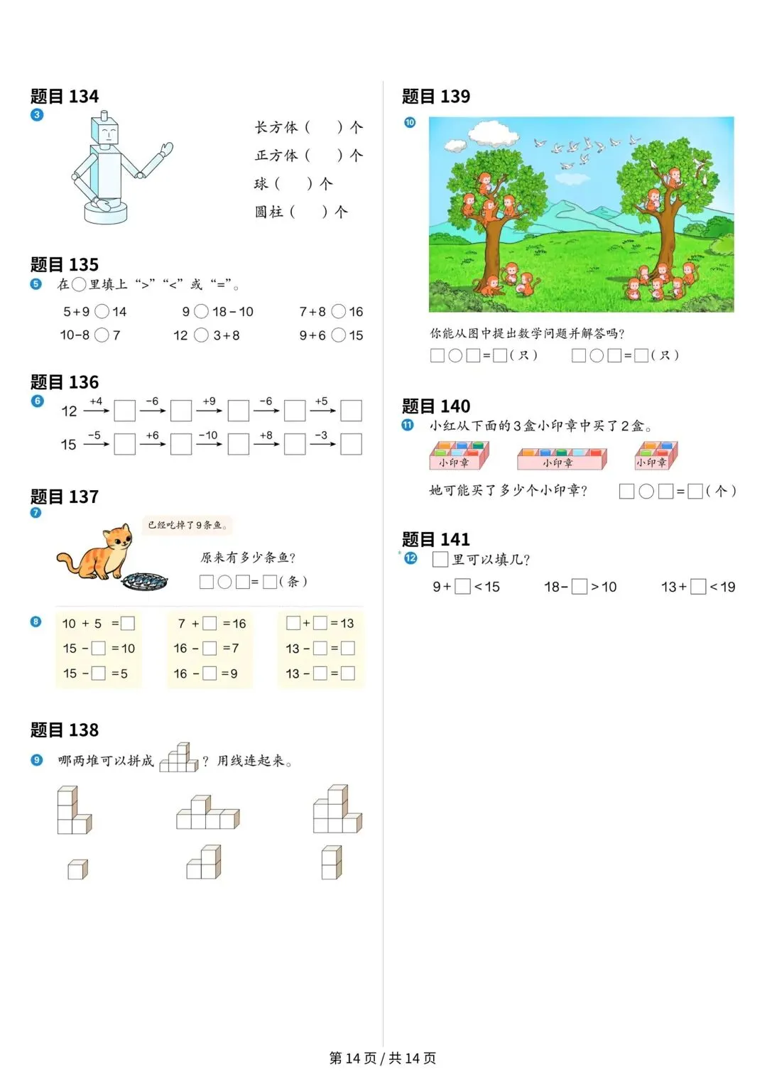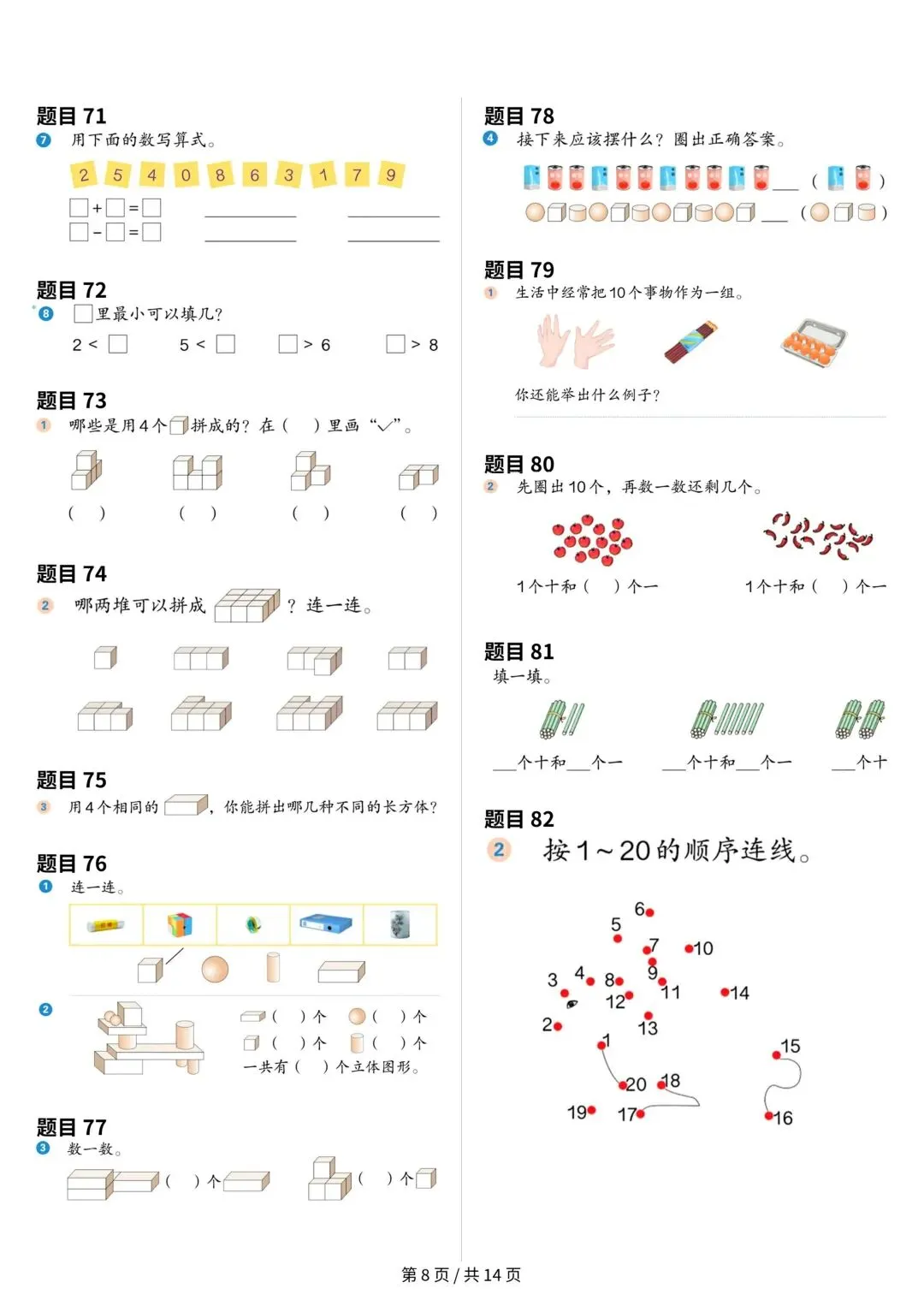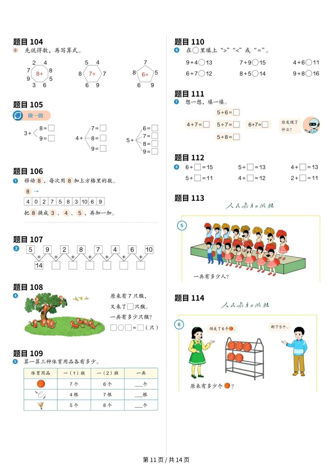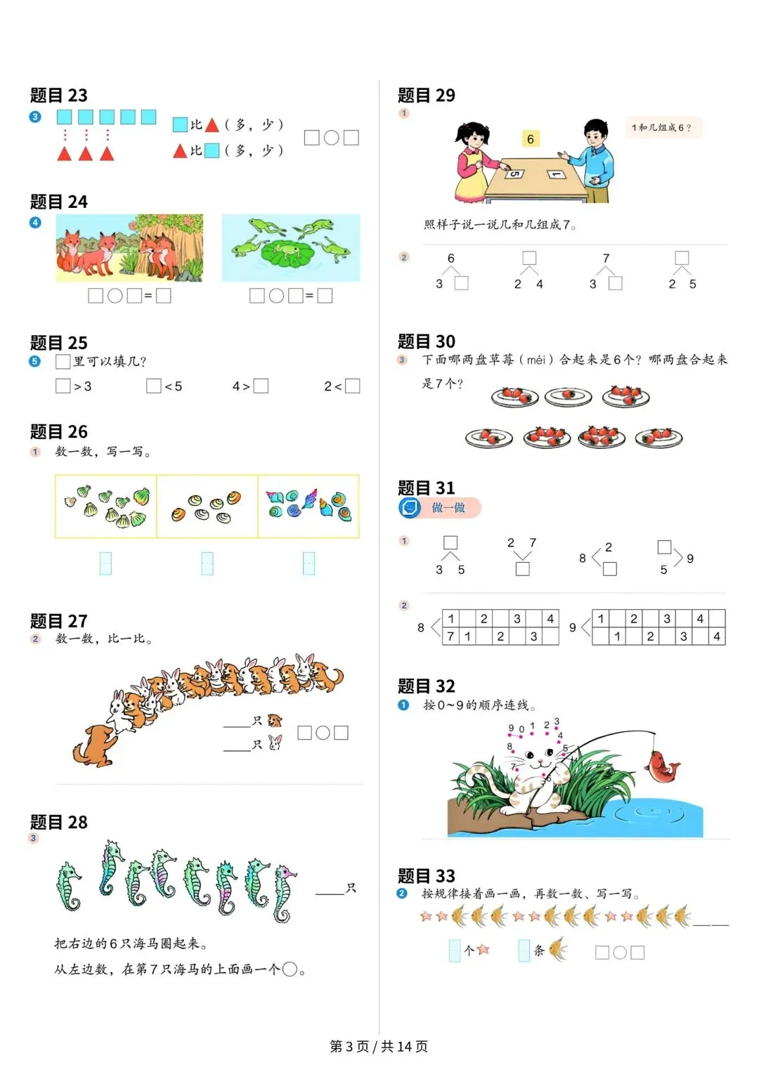 大家好,今天安安老师给大家整理了一年级上册数学课本原题,共14页。