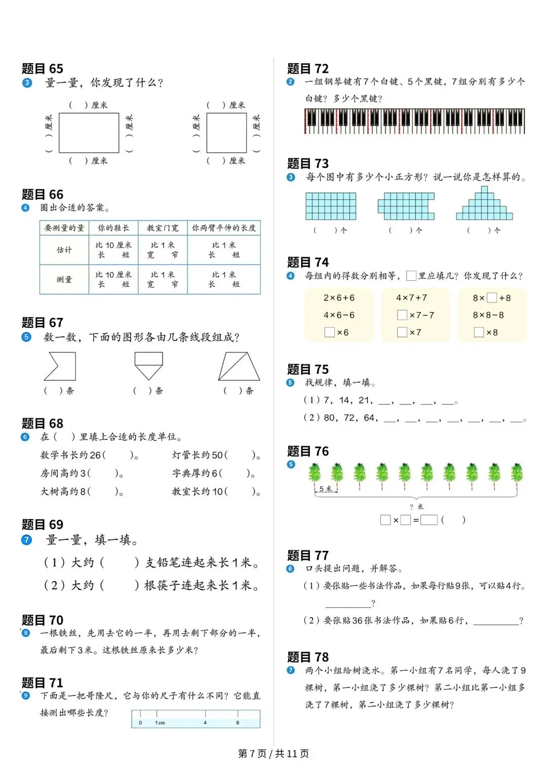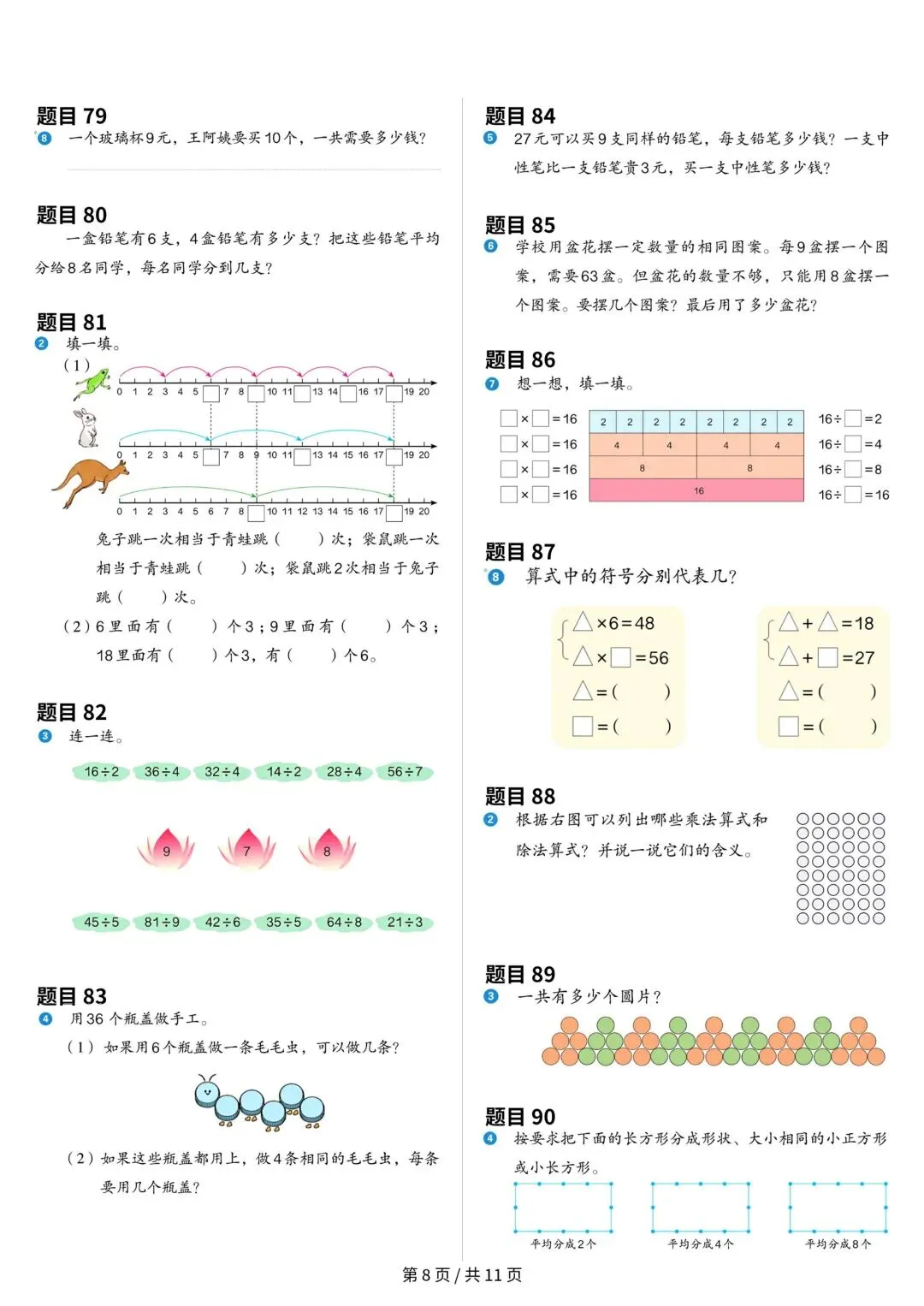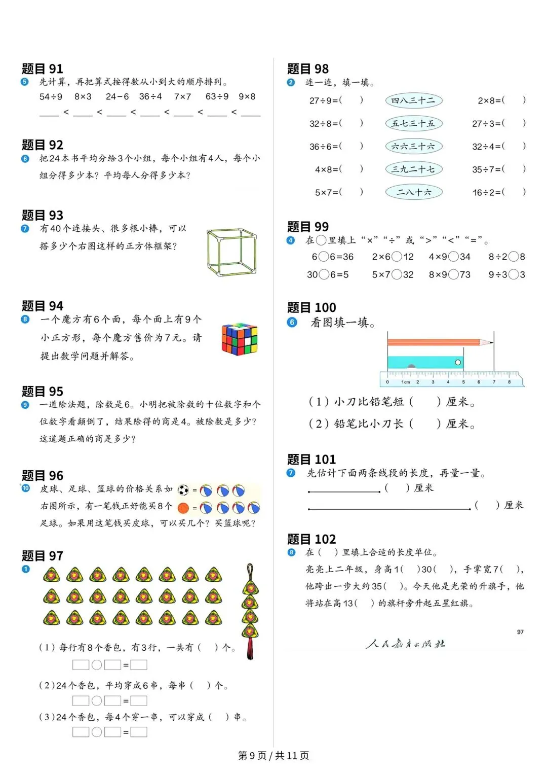 大家好,今天安安老师给大家整理了二年级上册数学课本原题,共11页。