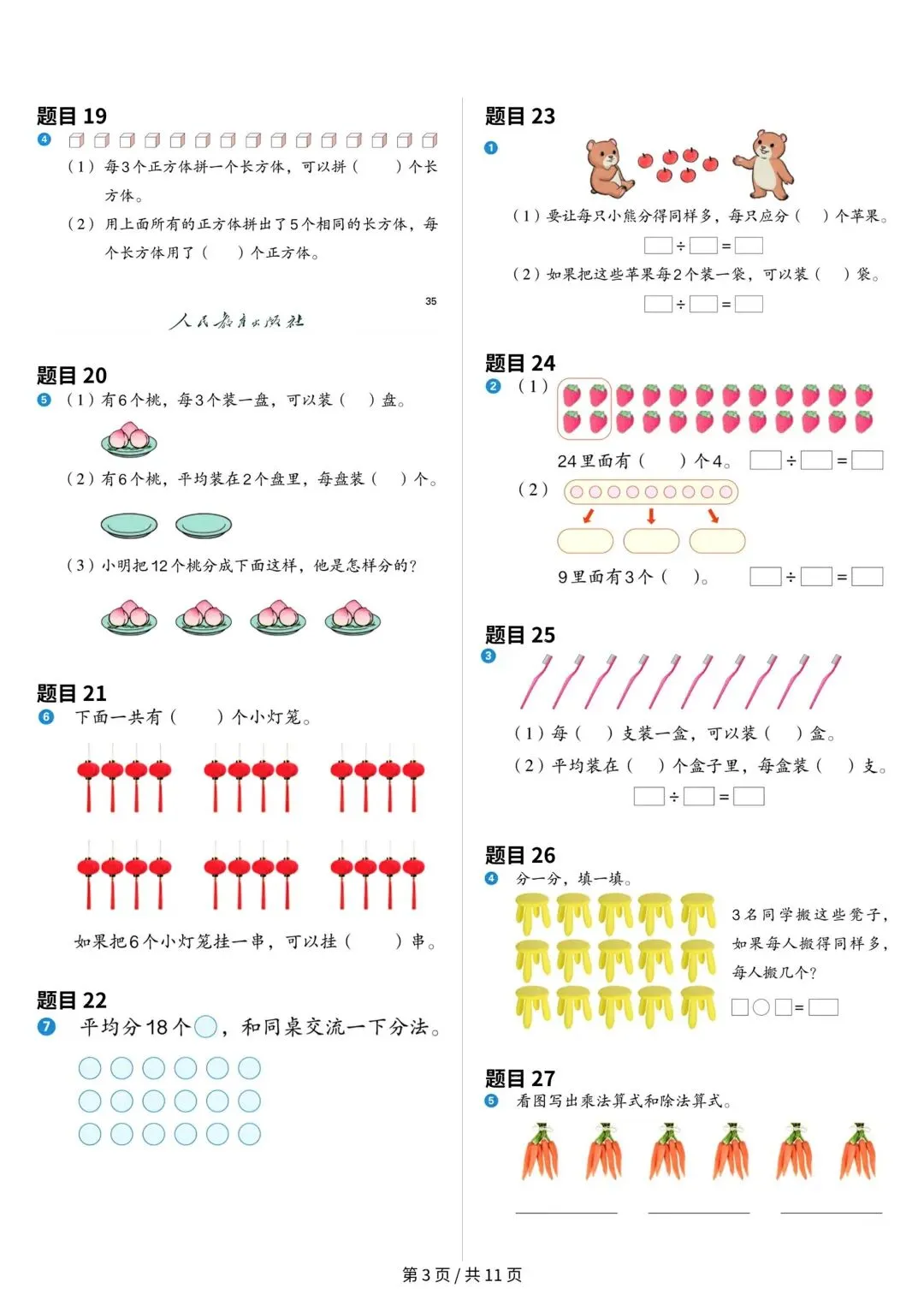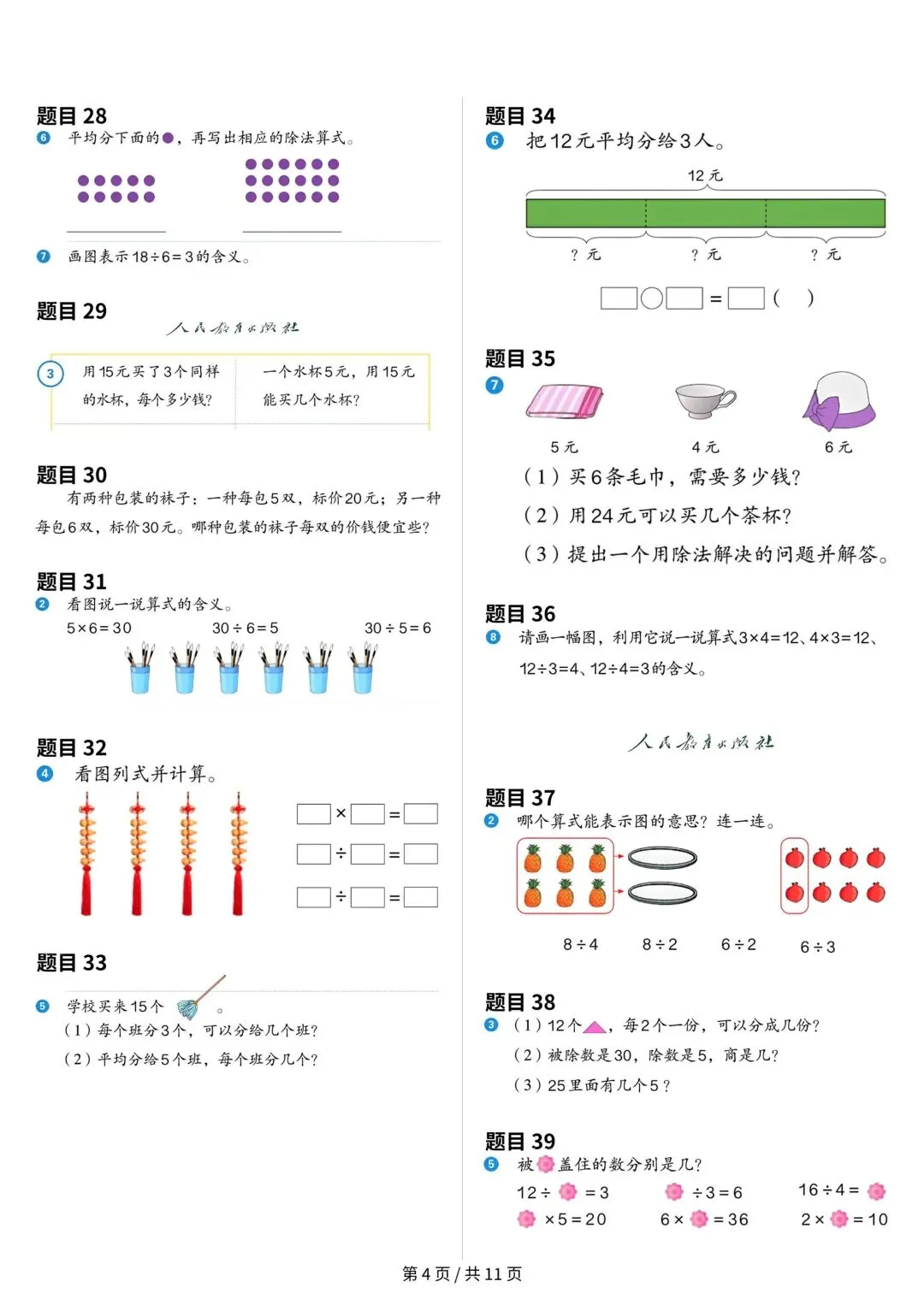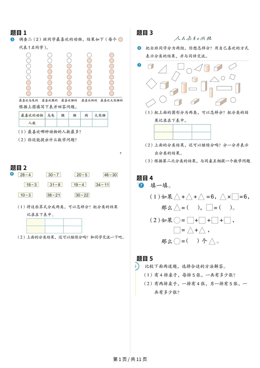 大家好,今天安安老师给大家整理了二年级上册数学课本原题,共11页。