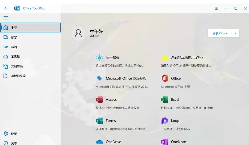 Office Tool Plus 是一个用于部署 Office, Visio, Project 的小工具。Office Tool Plus 基于微软的 Office 部署工具和 官方 OSPP 打造。支持下列产品:Microsoft 365Office 2024、2021、2019、2016、2013Visio Online Plan 2 & 2024、2021、2019、2016Project Online Desktop Client & 2024、2021、2019、2016