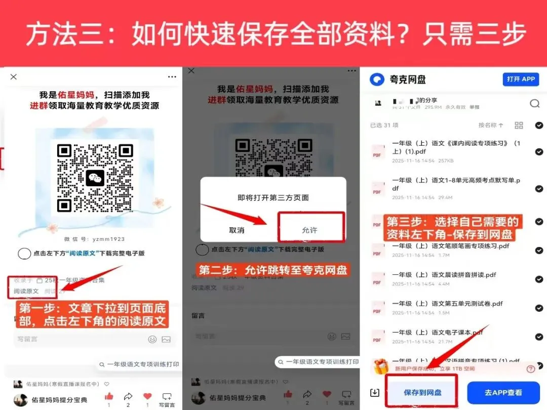 方法一:【复制上方链接】到【微信对话框】发给【自己或文件传输助手】,点链接保存到自己的网盘,链接易失效,建议家长老师们及时保存到自己网盘,手机端先保存后下载送1t空间。如果夸克网盘只有10g的,请务必联系我,我教你免费获得1T内存的方法,新老用户都适用。