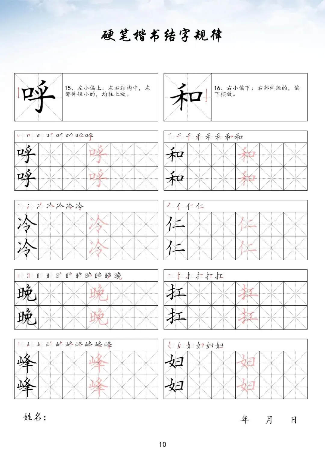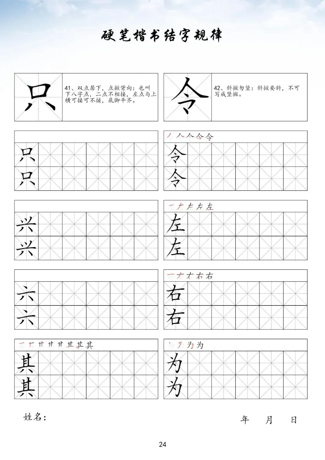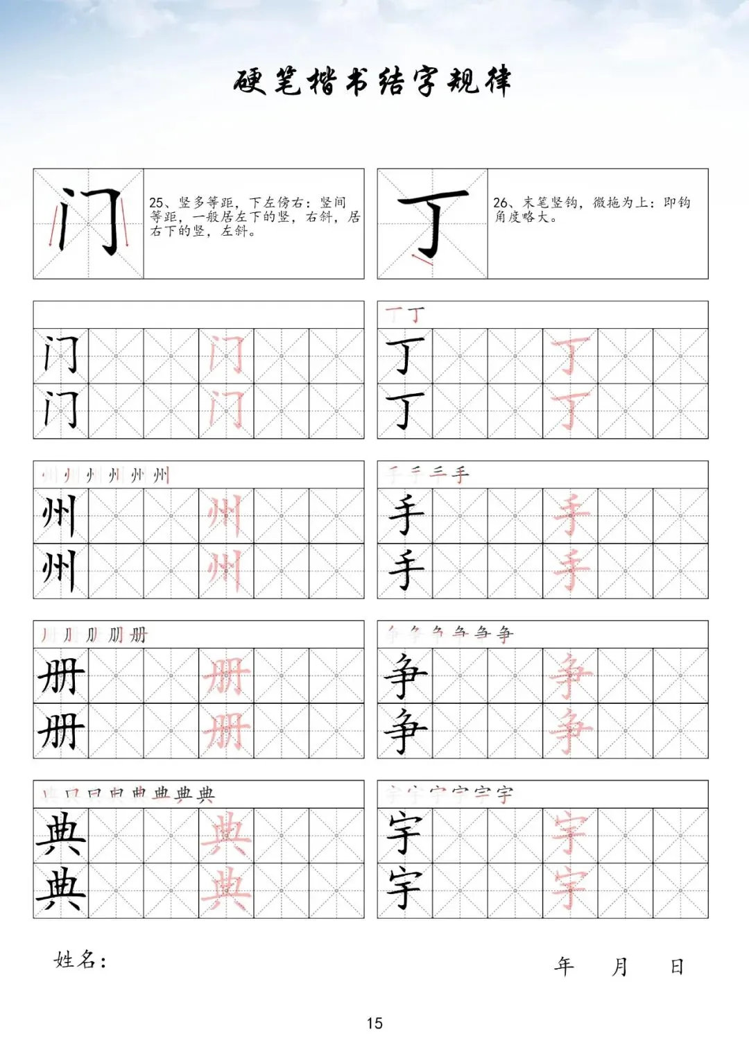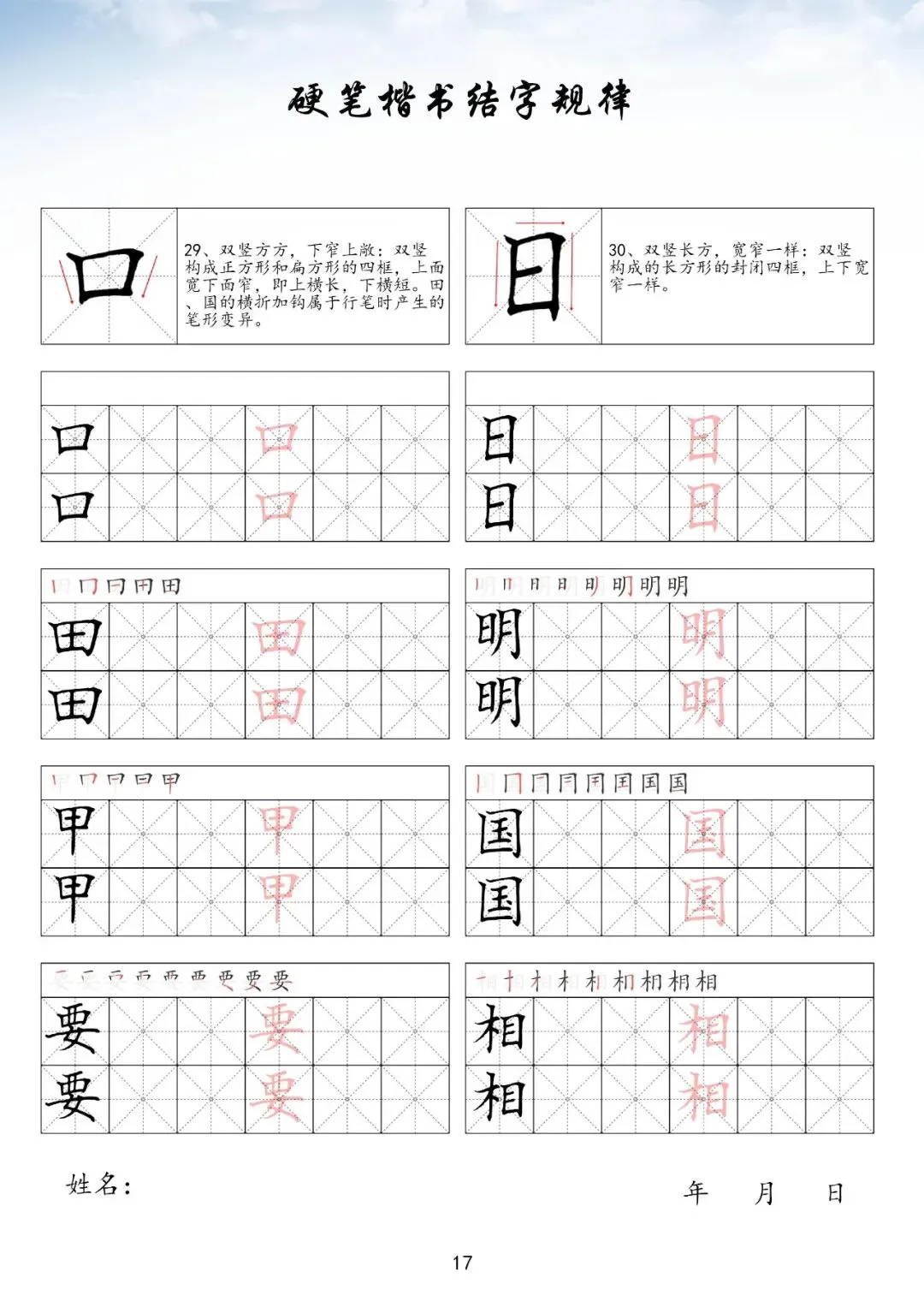 硬笔楷书偏旁部首上册,PDF免费下载