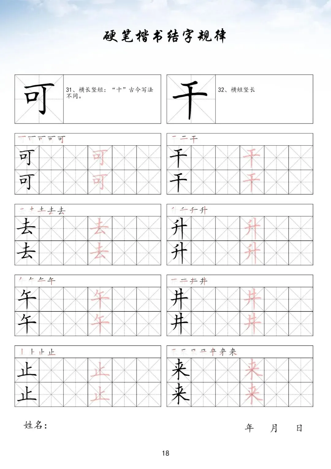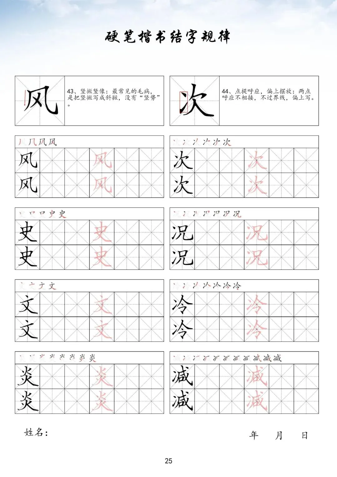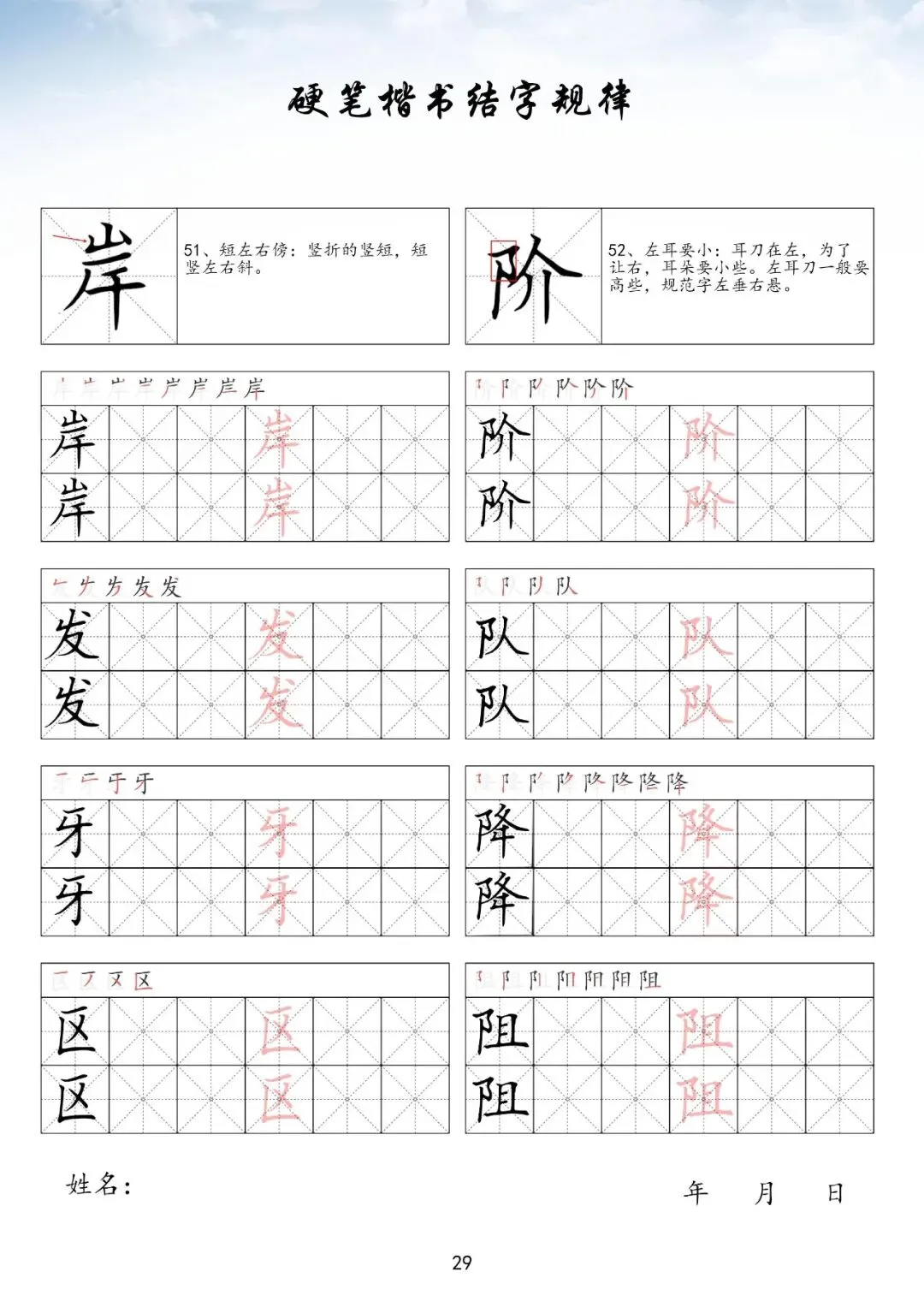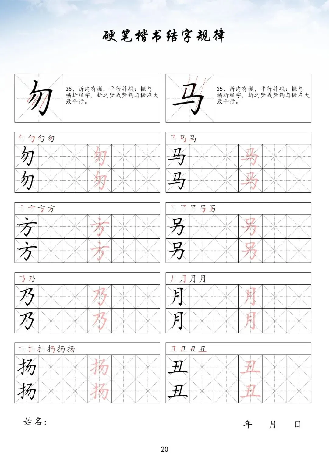 硬笔楷书偏旁部首上册,PDF免费下载