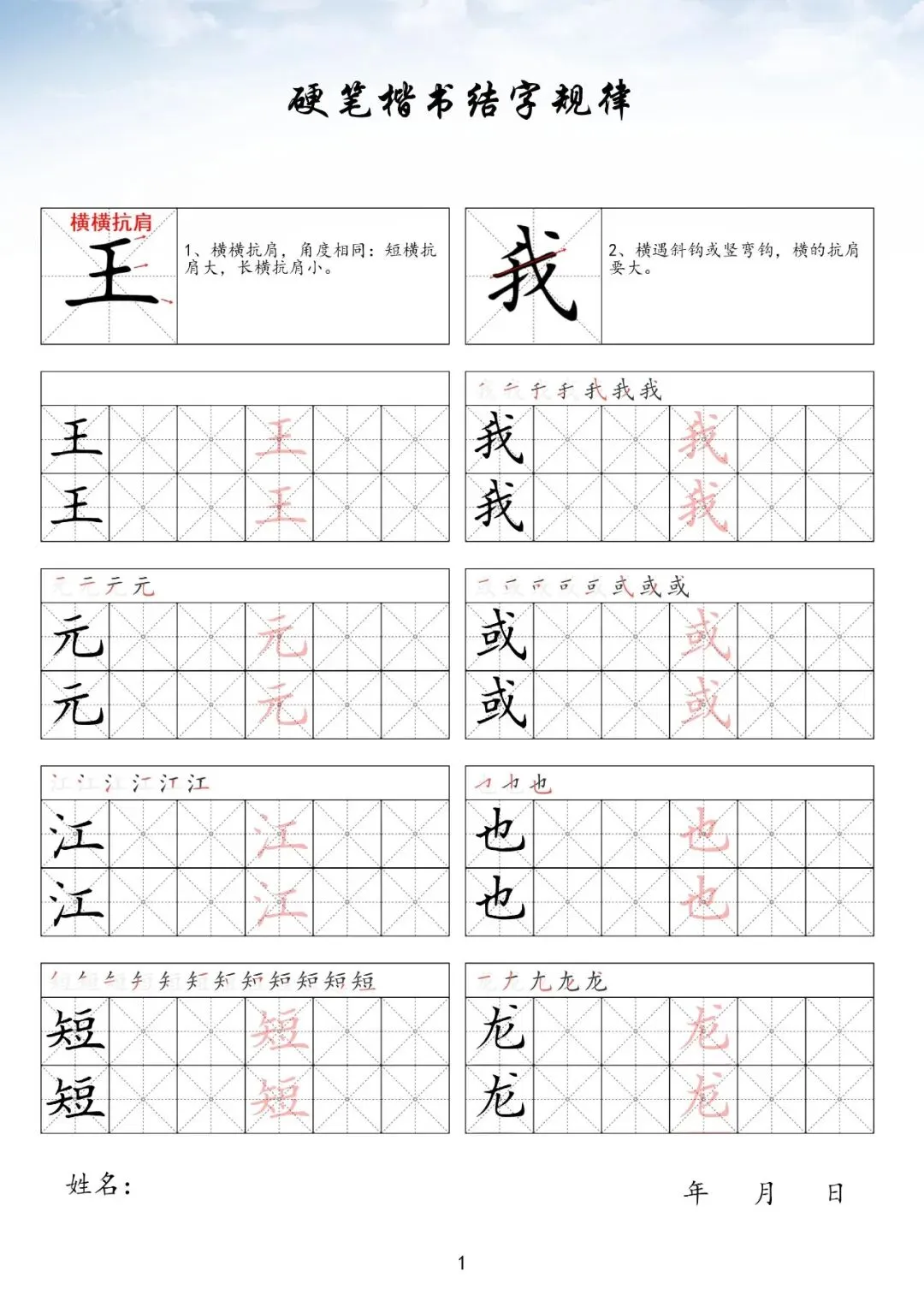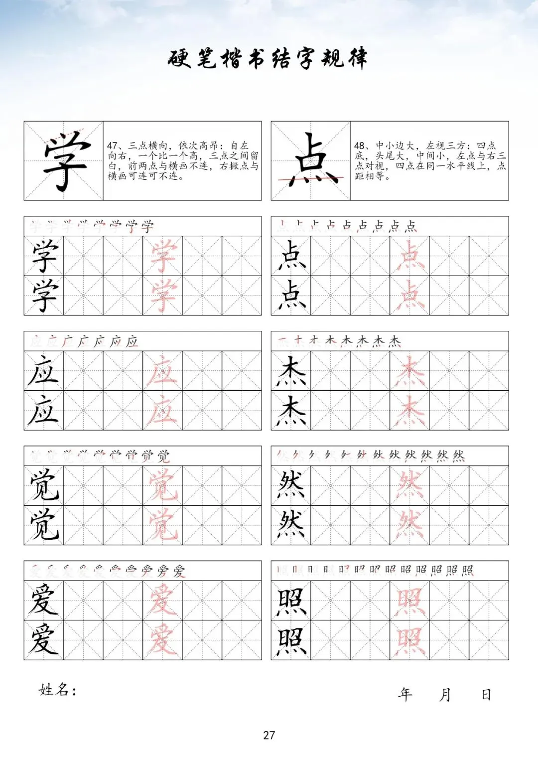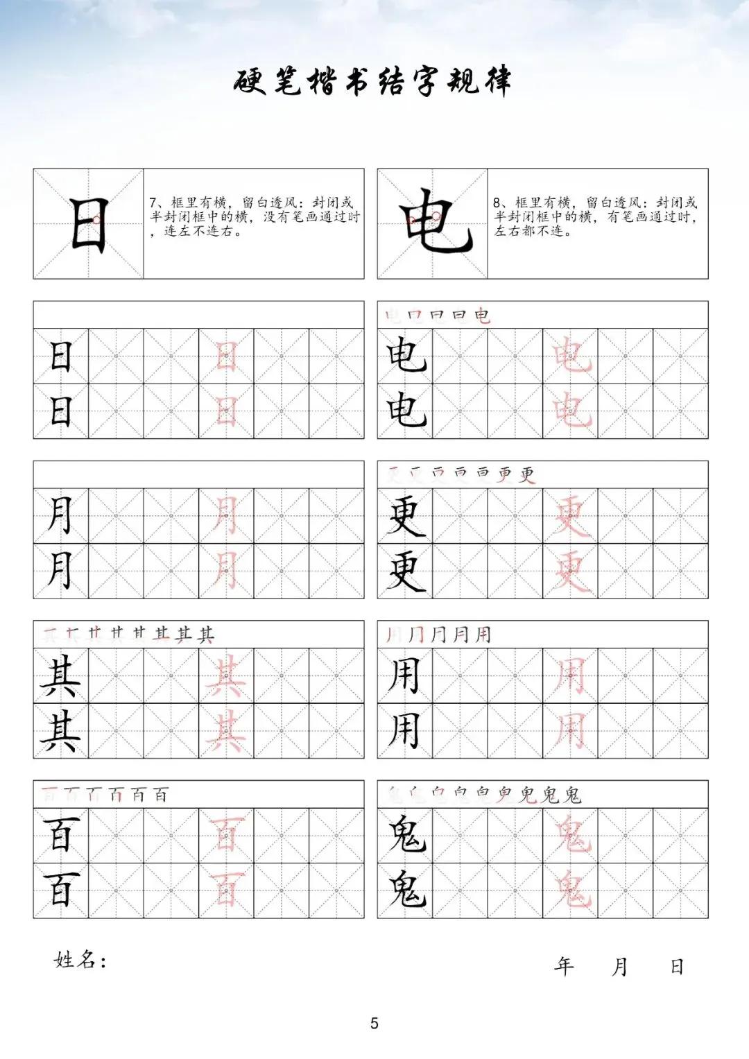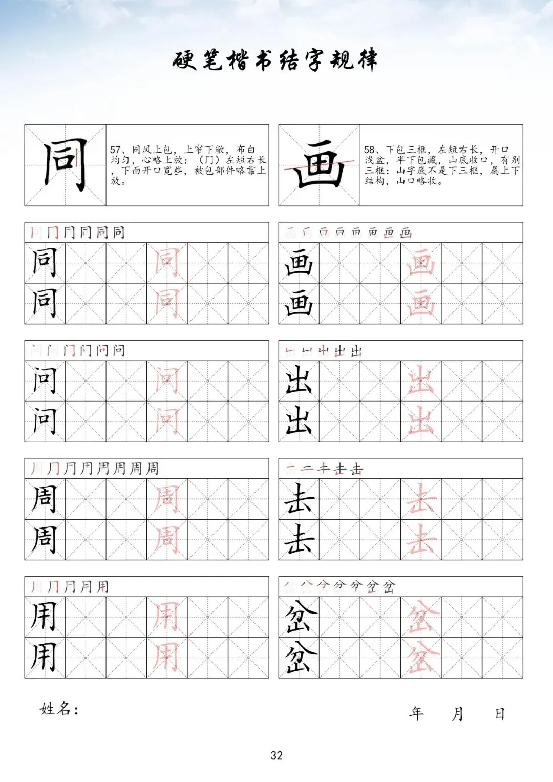 硬笔楷书偏旁部首上册,PDF免费下载