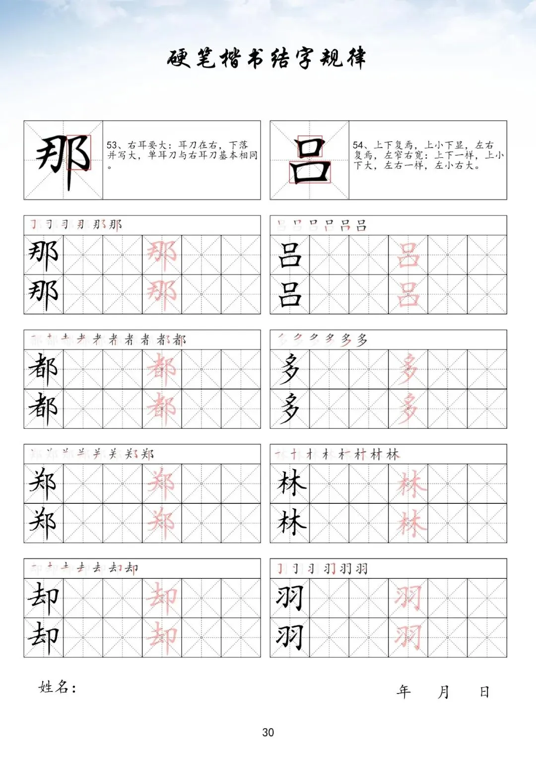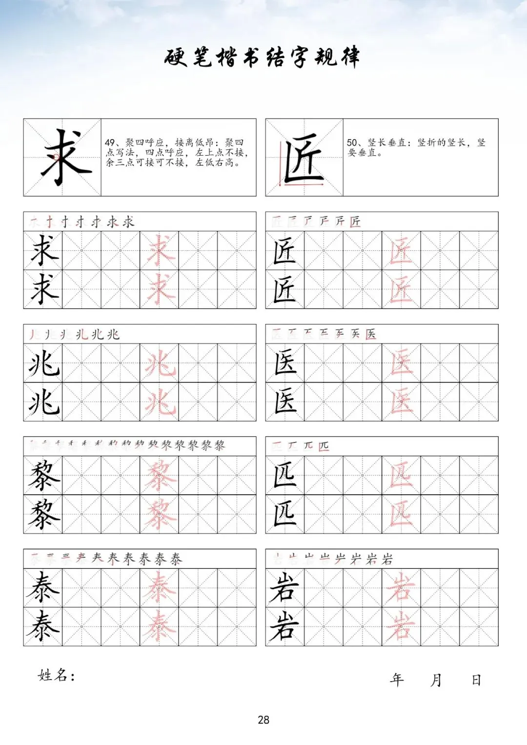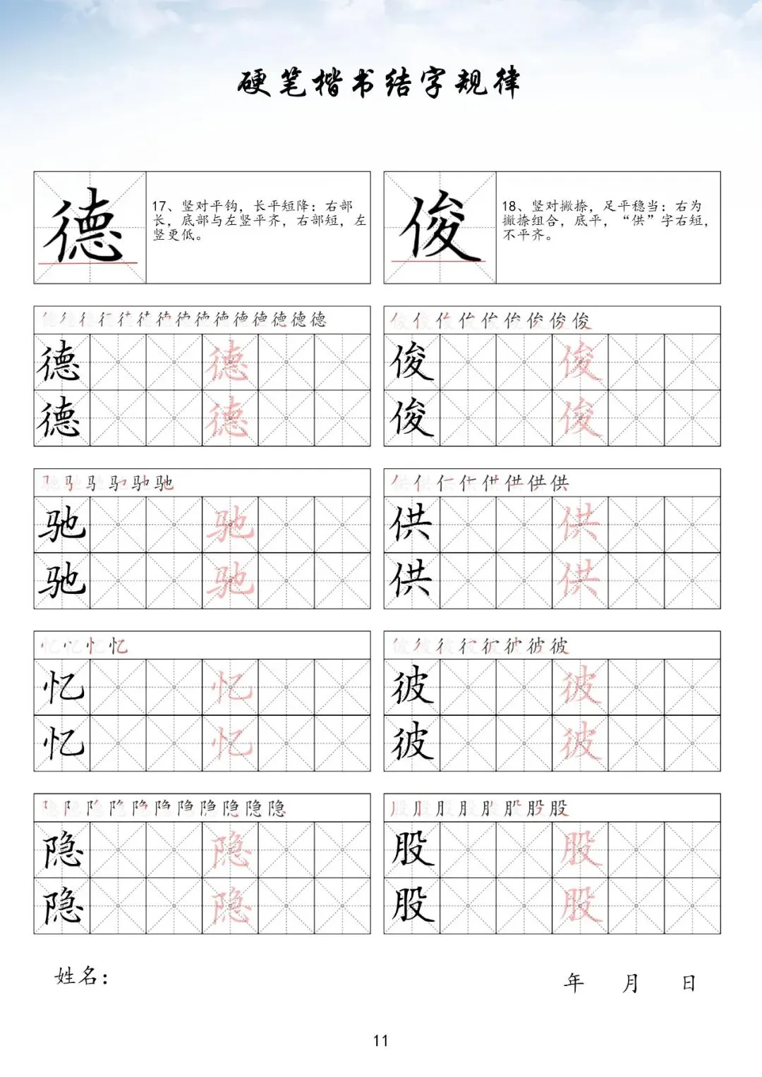 硬笔楷书偏旁部首下册,PDF免费下载