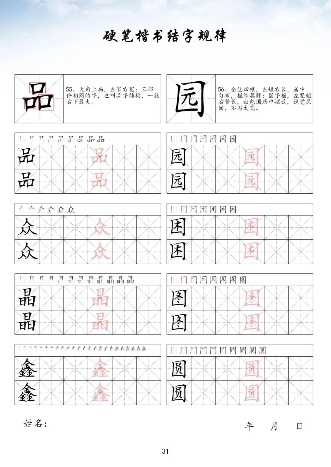 硬笔楷书间架结构,PDF免费下载