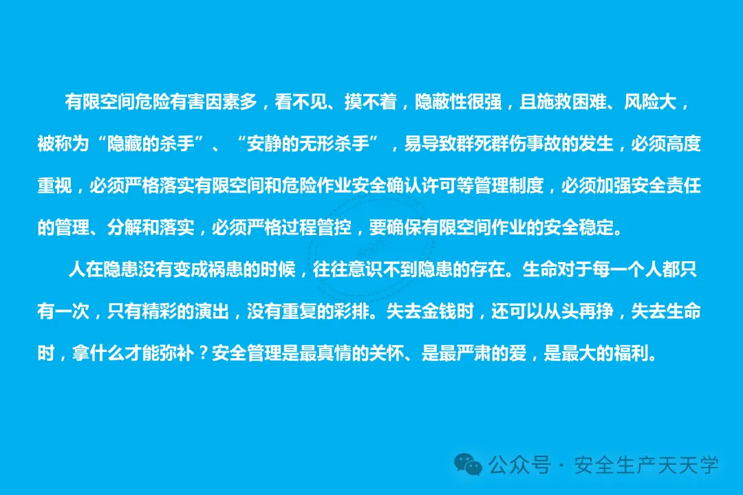 “安全生产天天学”微信公众号推送的【免费下载】系列,无需点赞、无需积分,无需付款,不用分享到朋友圈、转发到微信群,没有套路,直接下载。如果您觉得本公众号提供的资源对您有所帮助,请推荐给您的同事好友,小编将不胜感激,您的支持是我们不断提供优质免费资源的动力哦!