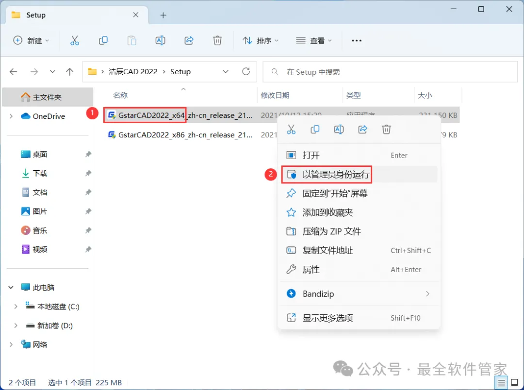 4、找到【GstarCAD2022_x64】应用程序,右键选择【以管理员身份运行】它
