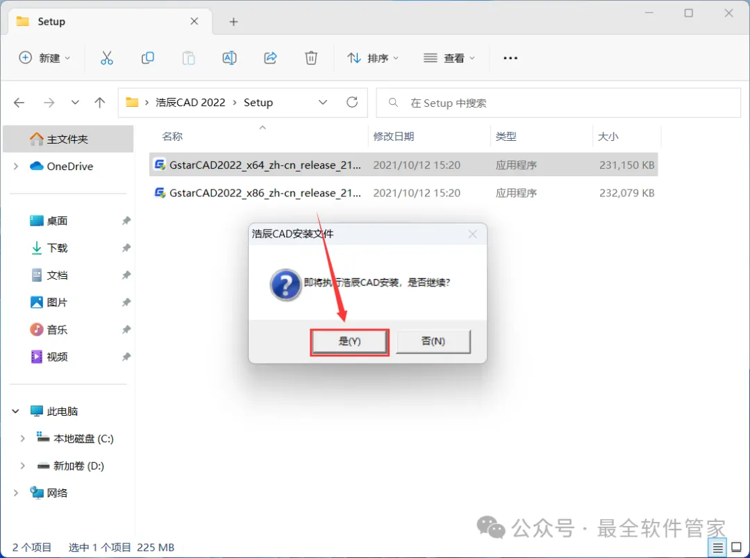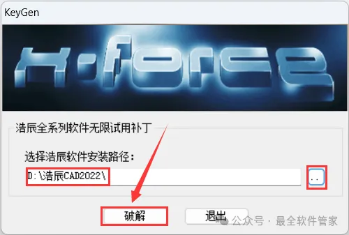 12、选择浩辰CAD 2022软件安装路径:步骤6可查看,再点击【PJ】