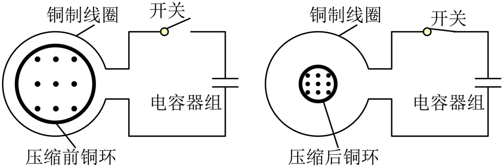 6.电磁压缩法是当前产生超强磁场的主要方法之一,其原理如图所示,在钢制线圈内同轴放置可压缩的铜环,其内已“注入”一个初级磁场,当钢制线圈与电容器组接通时,在极短时间内钢制线圈中的电流从零增加到几兆安培,铜环迅速向内压缩,使初级磁场的磁感线被“浓缩”,在直径为几毫米的铜环区域内磁感应强度可达几百特斯拉。此过程,铜环中的感应电流( )