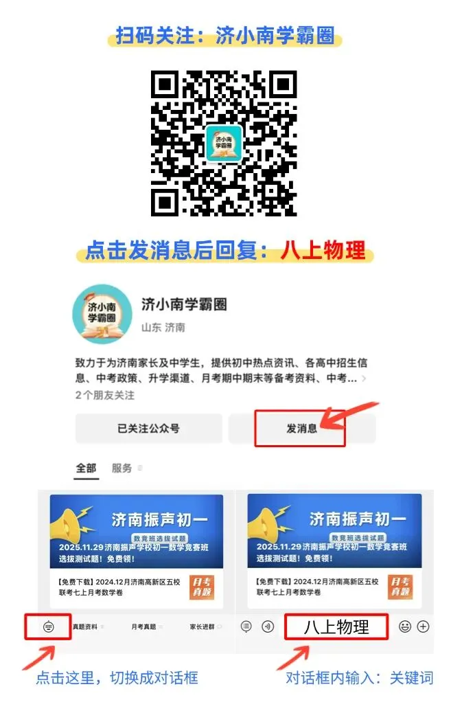 欢迎加入济南初中家长交流群,群内会及时分享最新的中考升学政策消息,专业答疑,初中月考、期中、期末真题/模拟题免费分享,已经进过群的家长无需重复进群~