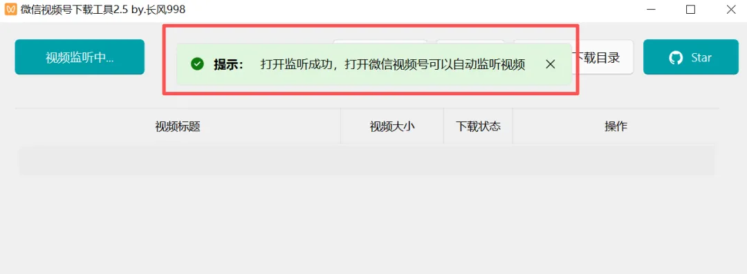 首次使用,点击“开始监听”,有个对话框,如不需要可以暂时点取消,或给X掉,然后就进入到监听阶段了,软件会自动监听视频内容。