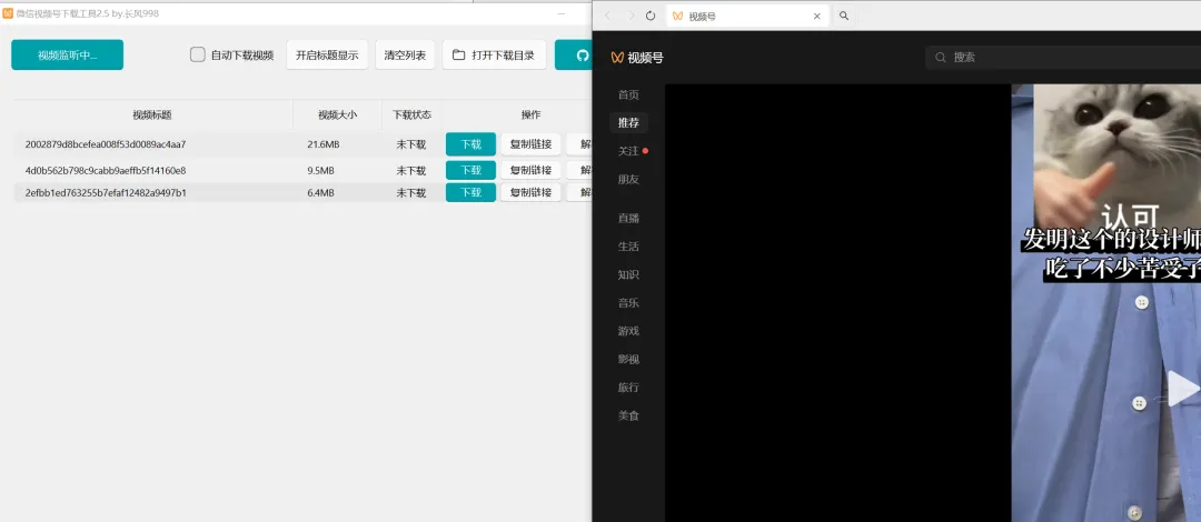 这款微信视频号下载工具真的很实用!它可以帮你下载视频号里的视频、直播回放,甚至是正在直播的内容,还能自动获取下载链接、自动监听播放。整个过程几乎不用手动操作,非常省心。