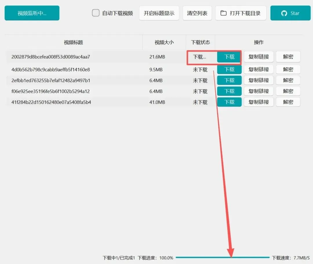 手动下载:点“复制链接”,把链接丢到你常用的下载工具里下到本地。等下载完后,再回到软件点“解密”,选中刚下好的视频,就能正常播放了。