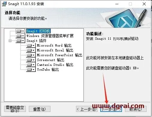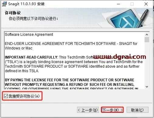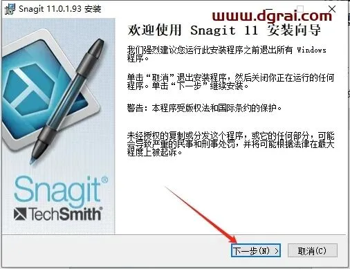 欢迎使用 Snagit 11 安装向导,点击下一步