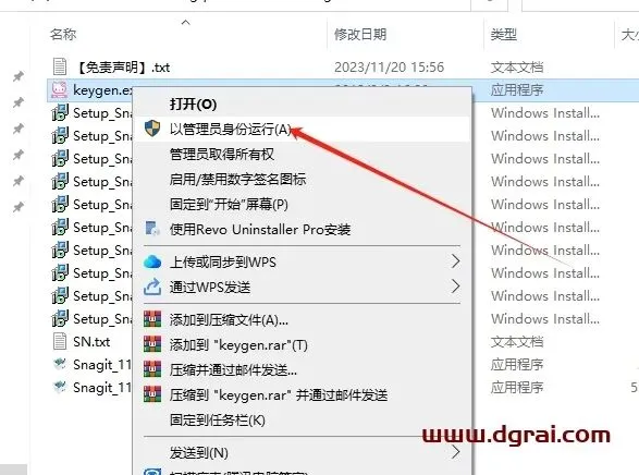 选择【Snagit_11.0.1.93.exe】鼠标右键以管理员身份运行