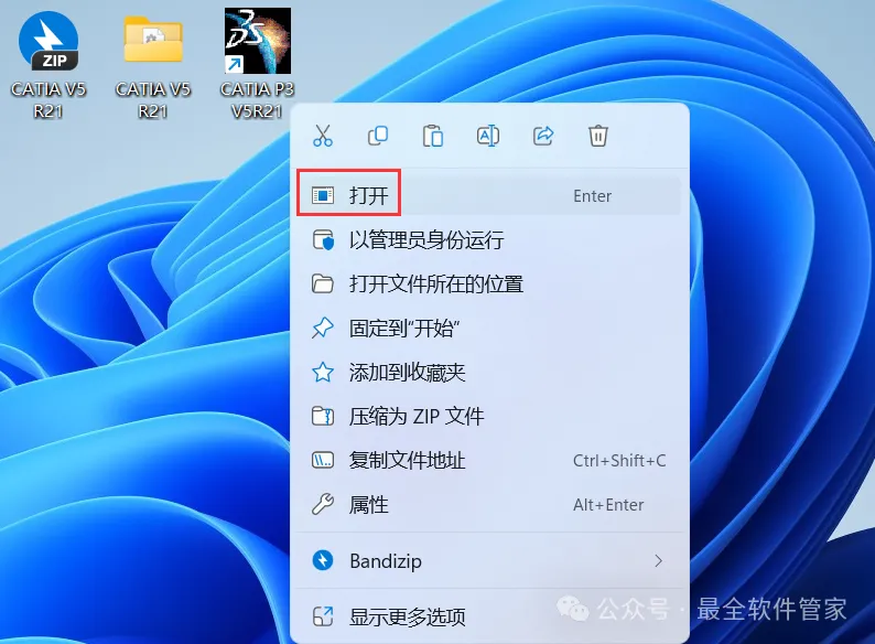 22、回到桌面,右键桌面上的【CATIA V5 R21软件图标】,点击【打开】