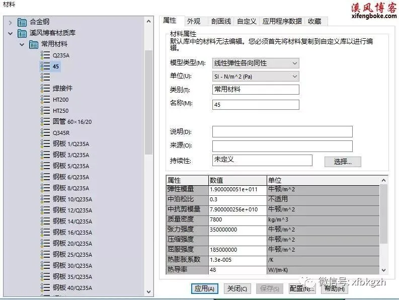 SolidWorks建模很必要的一个步骤就是选取材质,软件本身自带的材质往往不适合国人的材质标注习惯,所以总结整理的SolidWorks材质库,提供给博友们下载使用。