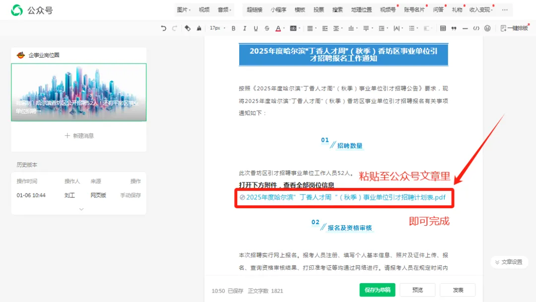 这款工具最打动我的就是“简单、稳定、实用、安全”,完全戳中了公务员考试通知发布的核心需求。不管你是刚接触政务公众号运营的新手,还是想提高考试通知附件发布效率的老运营,用一次就能爱上,既能保障信息发布的时效性,又能兼顾考生的使用便捷性。