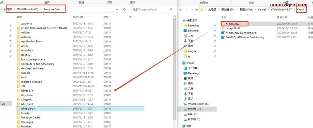打开Crack文件夹,将里面的nTopology文件夹复制到C:\ProgramData下(注意:ProgramData是隐藏文件夹)