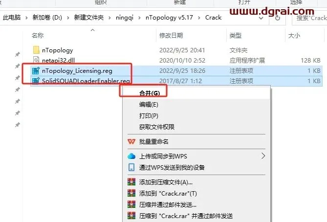 将2个reg文件全部选择,然后鼠标右键点击【合并】