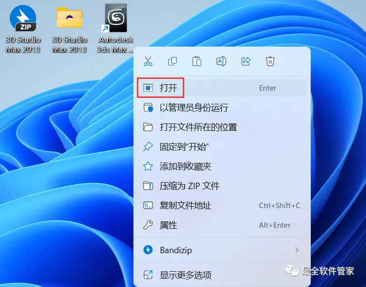 11、回到桌面,右键桌面上的【3ds Max 2013软件图标】,点击【打开】