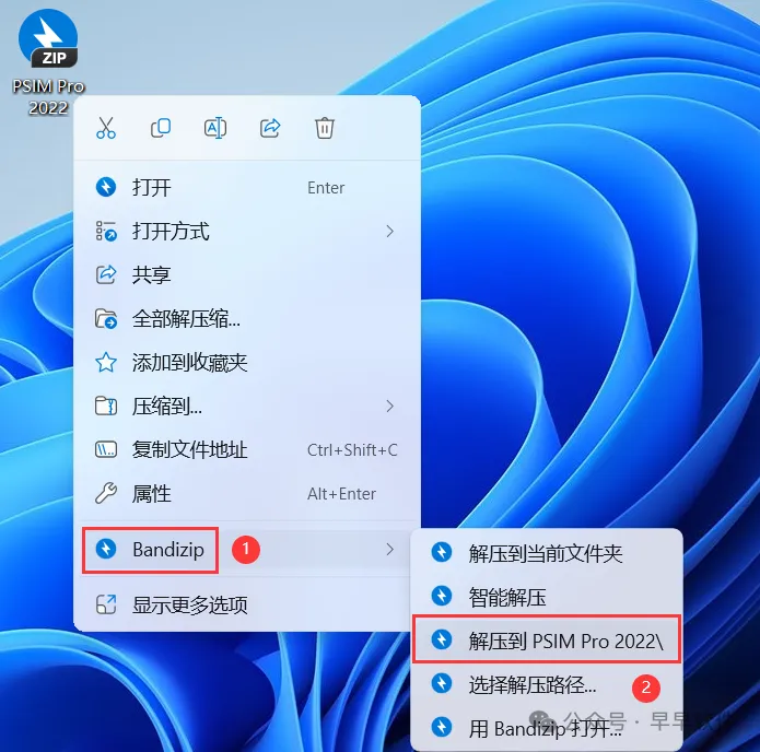1、下载PSIM Pro 2022软件安装包到电脑上,右键选择【解压到PSIM Pro 2022\】