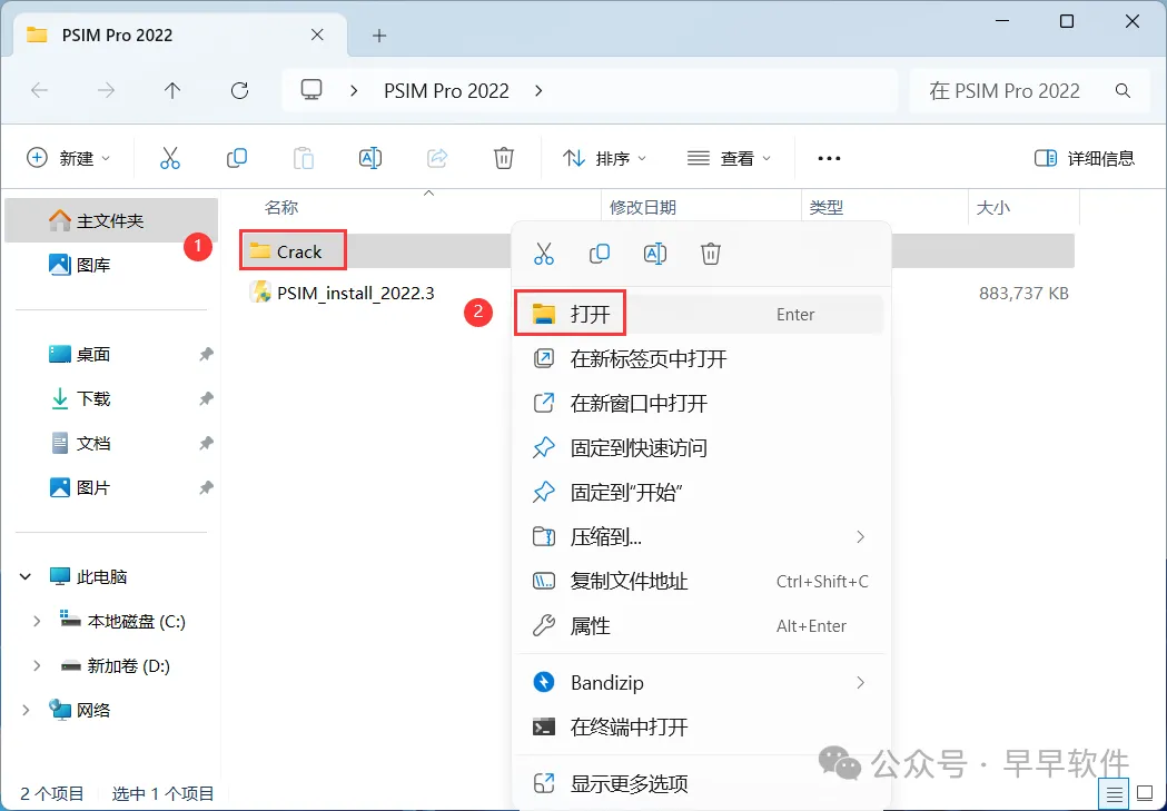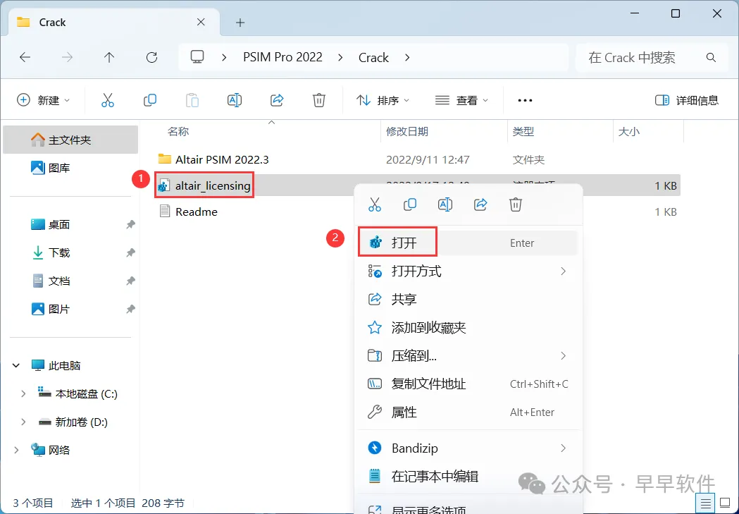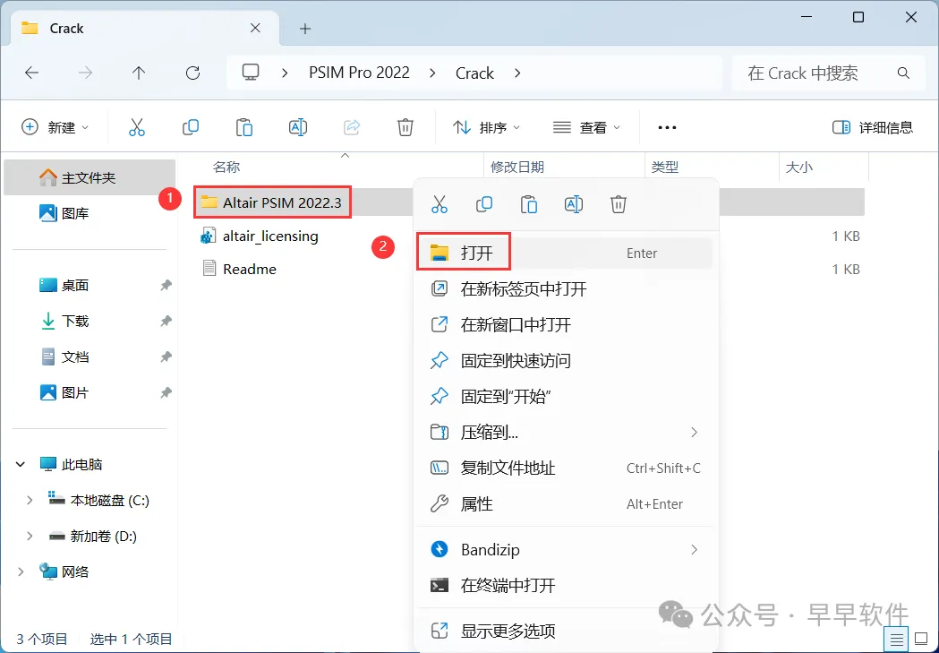16、回到Crack文件夹,找到【Altair PSIM 2022.3】文件夹,右键【打开】它