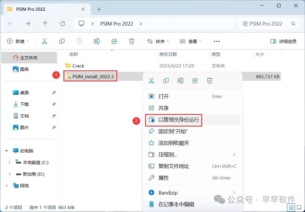 7、回到PSIM Pro 2022文件夹,找到【PSIM_install_2022.3】应用程序,右键选择【以管理员身份运行】它