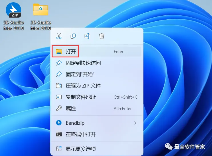 10、回到桌面,右键桌面上的【3ds Max 2018软件图标】,点击【打开】