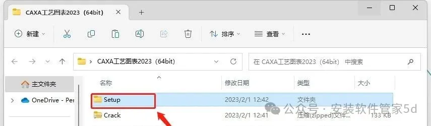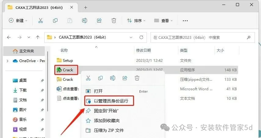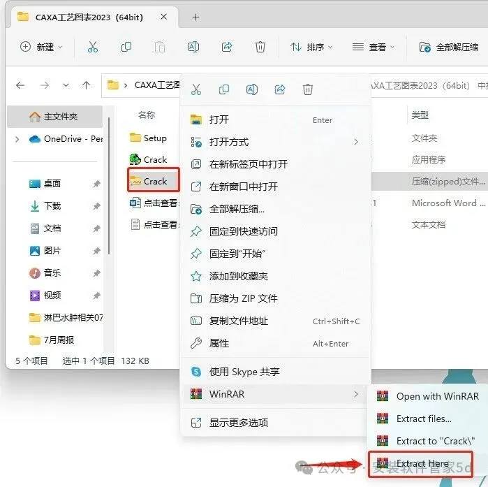 11.打开安装包解压后的【CAXA工艺图表2023(64bit)】文件夹,鼠标右击【Crack】选择【解压到当前文件夹】。