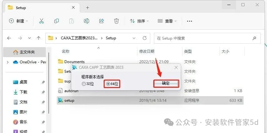 4.选择【64位】,点击【确定】。