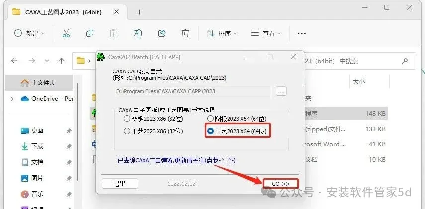 13.选择【工艺2023 x64(64位】,点击【Go】。