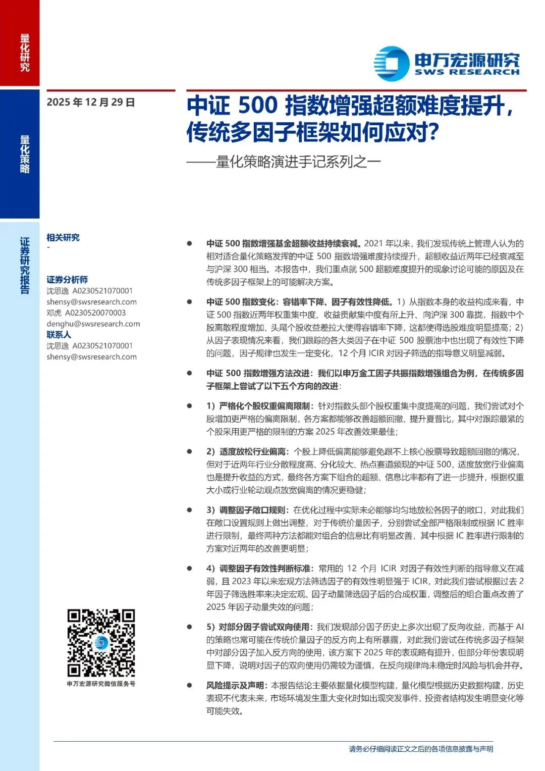 量化策略演进手记系列之一:中证500指数增强超额难度提升,传统多因子框架如何应对?-251229-申万宏源-22页
