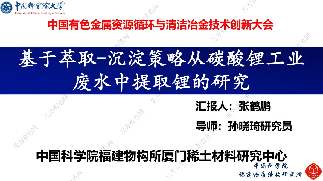 今天给大家带来的是 中国科学院福建物构所厦门稀土材料研究中心 张鹤鹏老师 分享的“基于萃取-沉淀策略从碳酸锂工业废水中提取锂的研究”,希望大家喜欢。