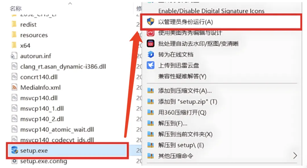 步骤3:鼠标右击 Setup 选择:以管理员身份运行。