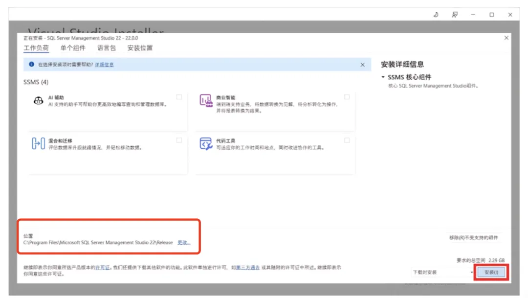 步骤20:勾选需要的功能,修改安装路径,点击:安装。